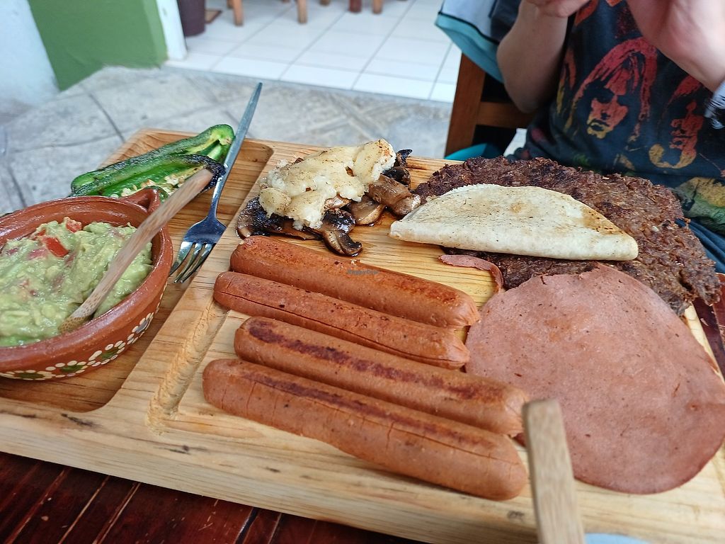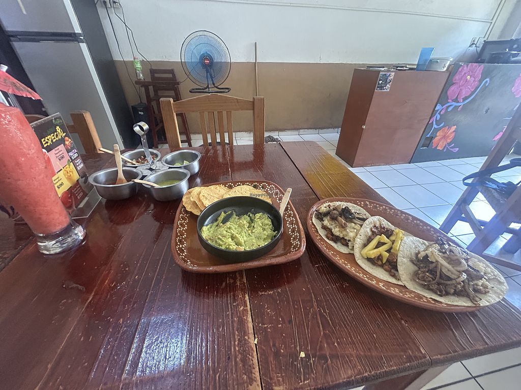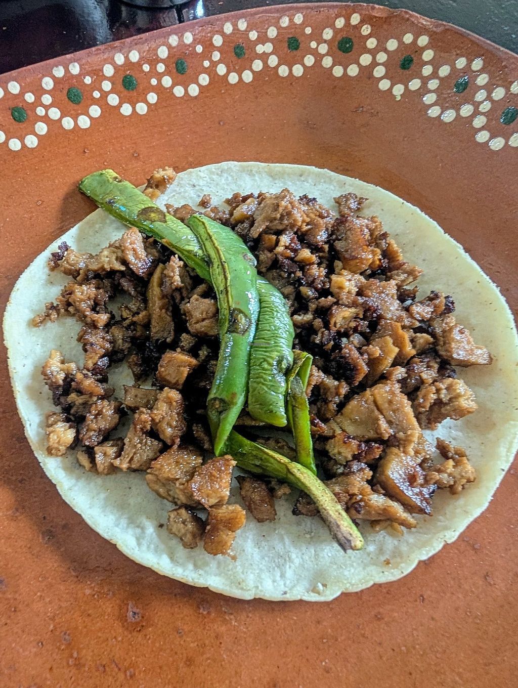 arriba/above: taco al pastor, debajo/below: taco de asada