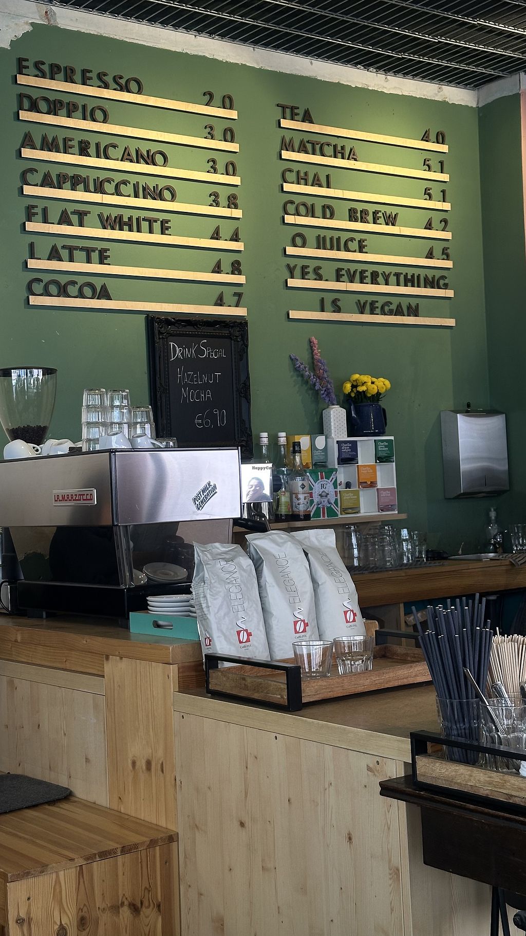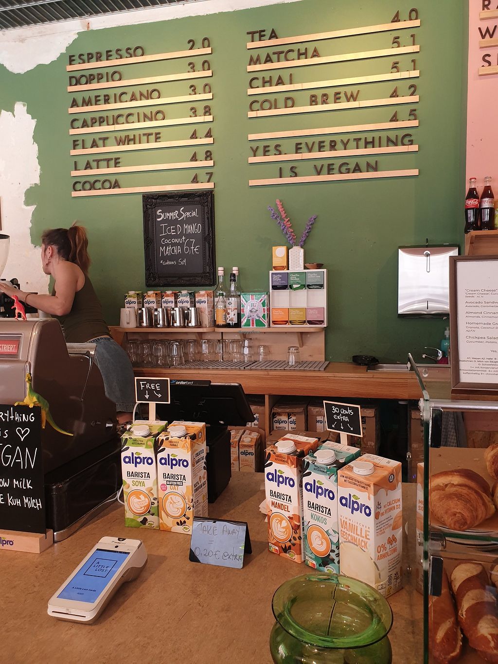 Nice little vegan café. The match special was really great and they had a couple of warm food options as well as some pastries. Recommend it for a quick, cozy breakfast close to the main station.