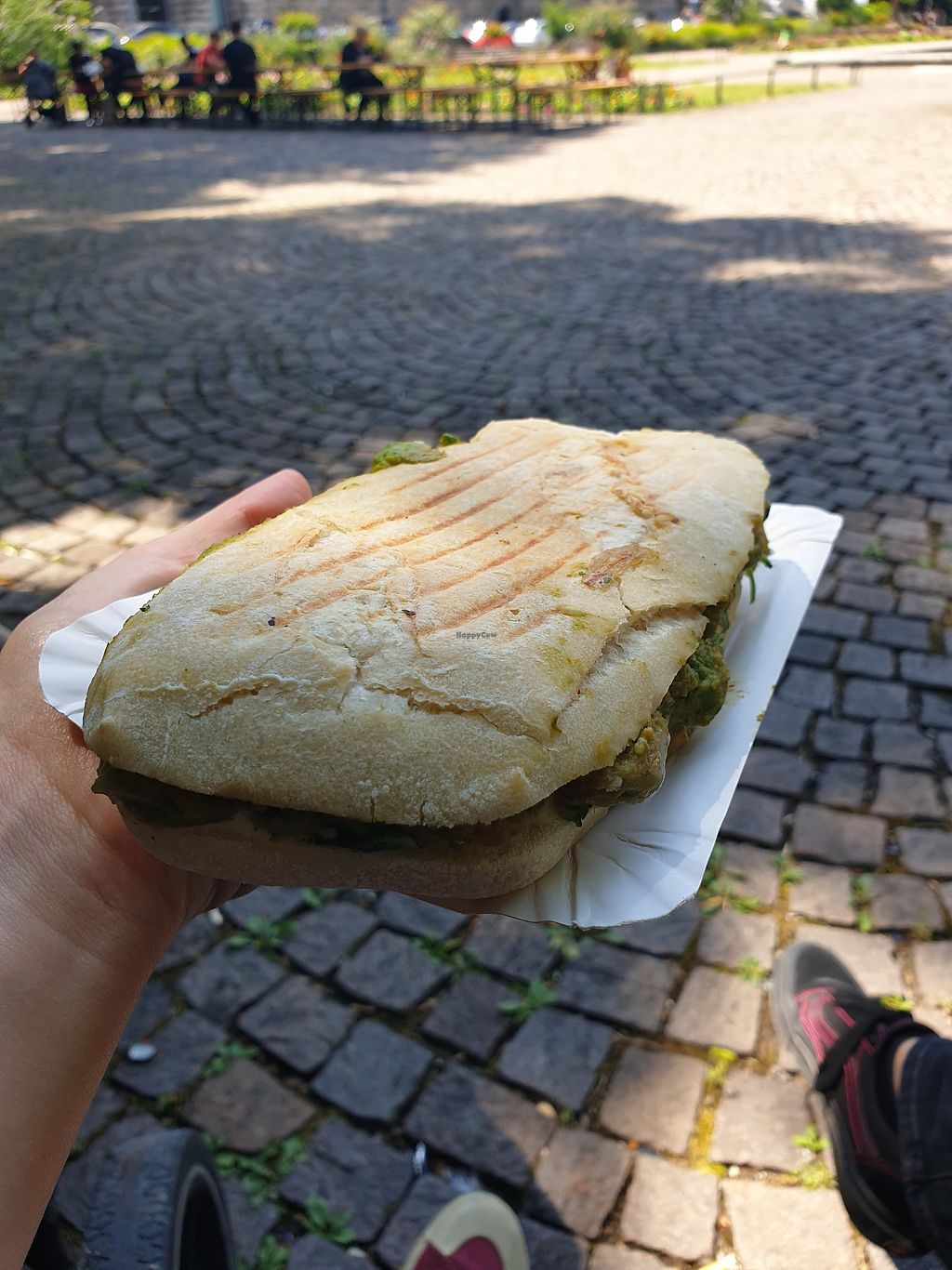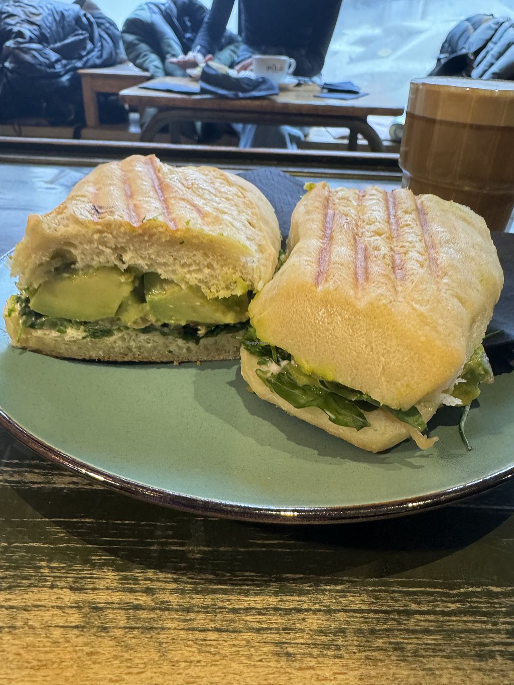 I was there on friday at Lunch time. It was busy but the staff was friendly. I bought the Avocado sandwich, a croissant and a franzbrötchen to go. The avo sandwich was hot but a bit messy to eat.