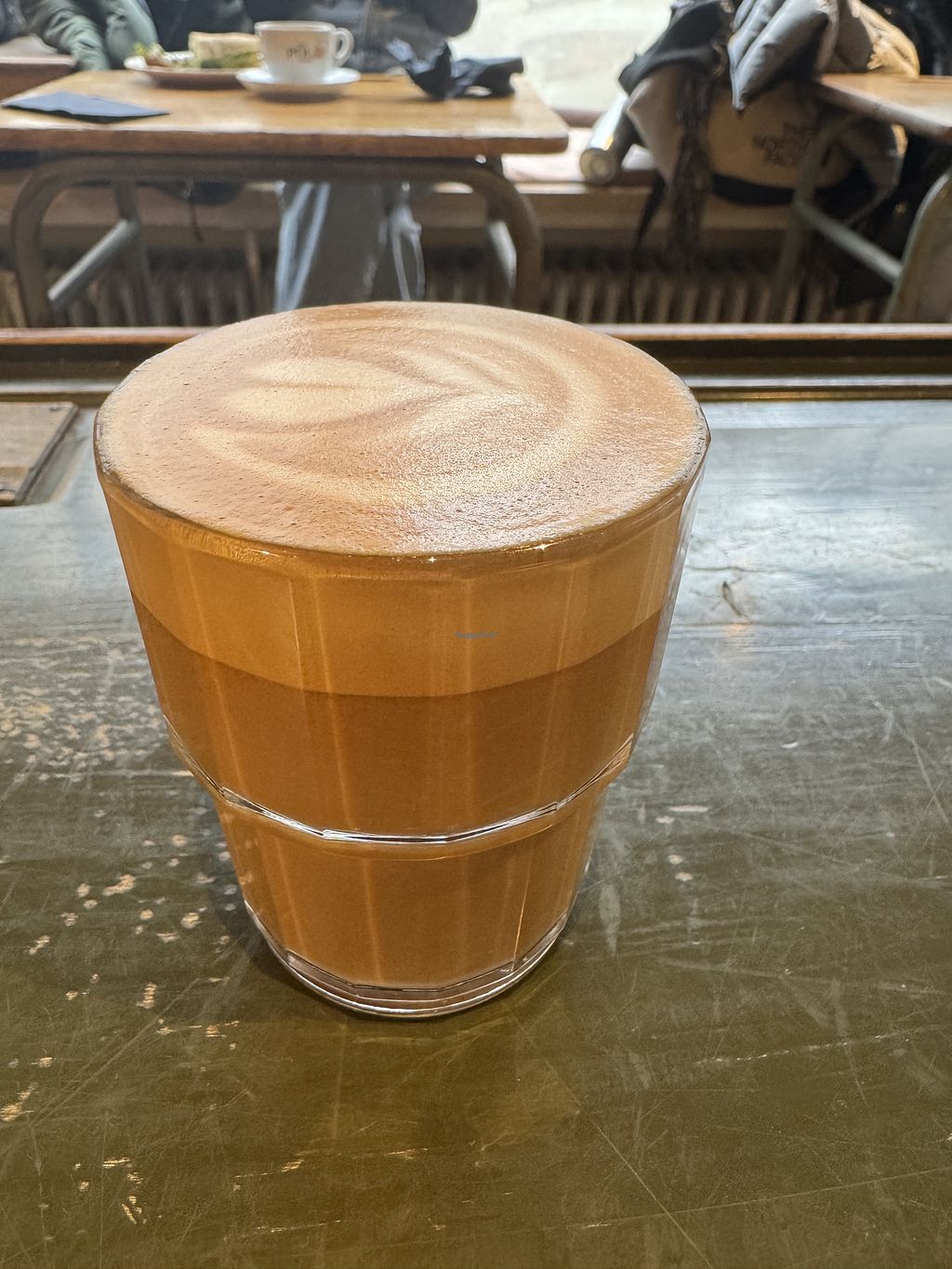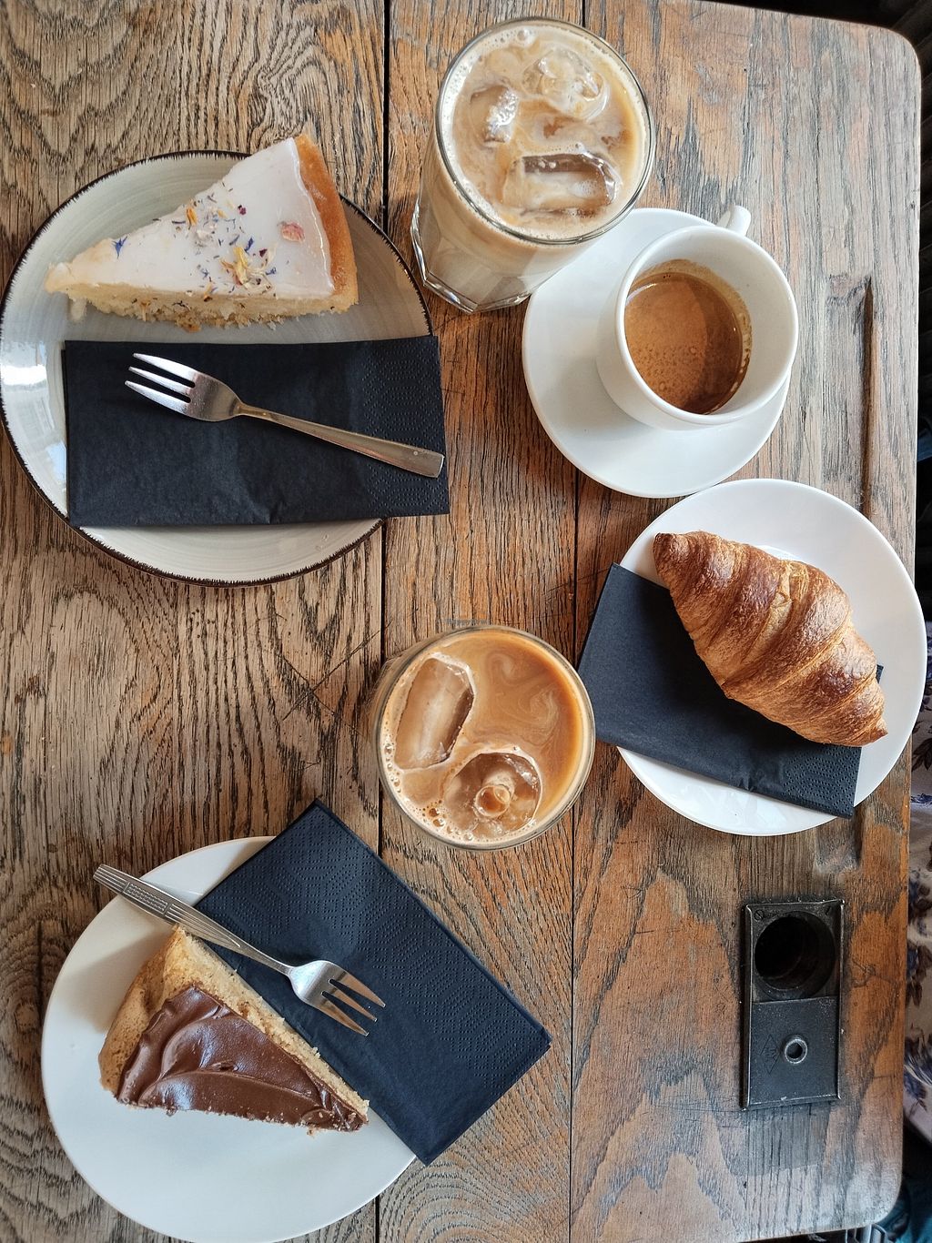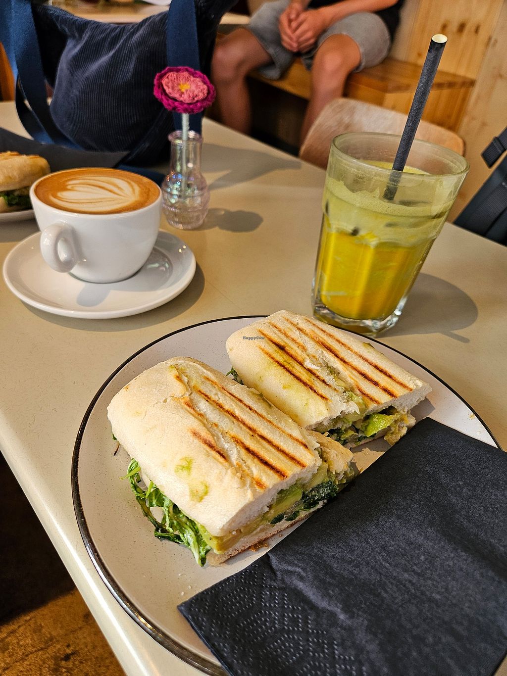 Small hipster café, completely vegan, very cool interior design and therefore, as is often the case, unfortunately crazy uncomfortable to sit in (for taller people). I only had a matcha and a croissant, but both were delicious.