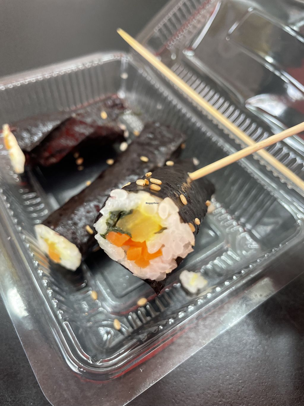Die veganen Dumplings waren lecker. Das vegane Gimbap ist auch ein leckerer Snack für Zwischendurch. Leider waren die veganen Corndogs an 2 Tagen ausverkauft.