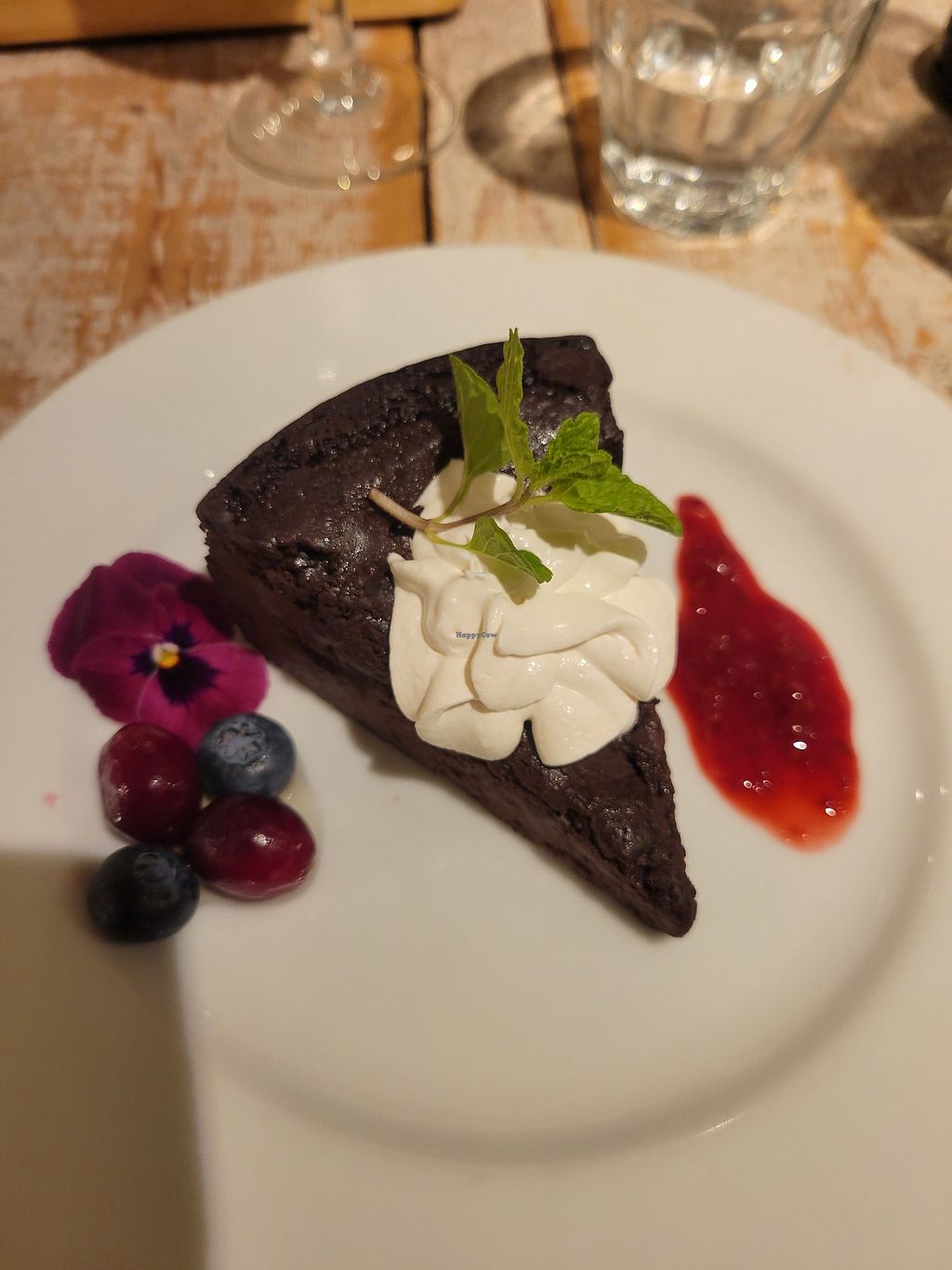 Delicious rich chocolate gateau. Warming drinks. Very friendly and cozy place. Great food and service.
