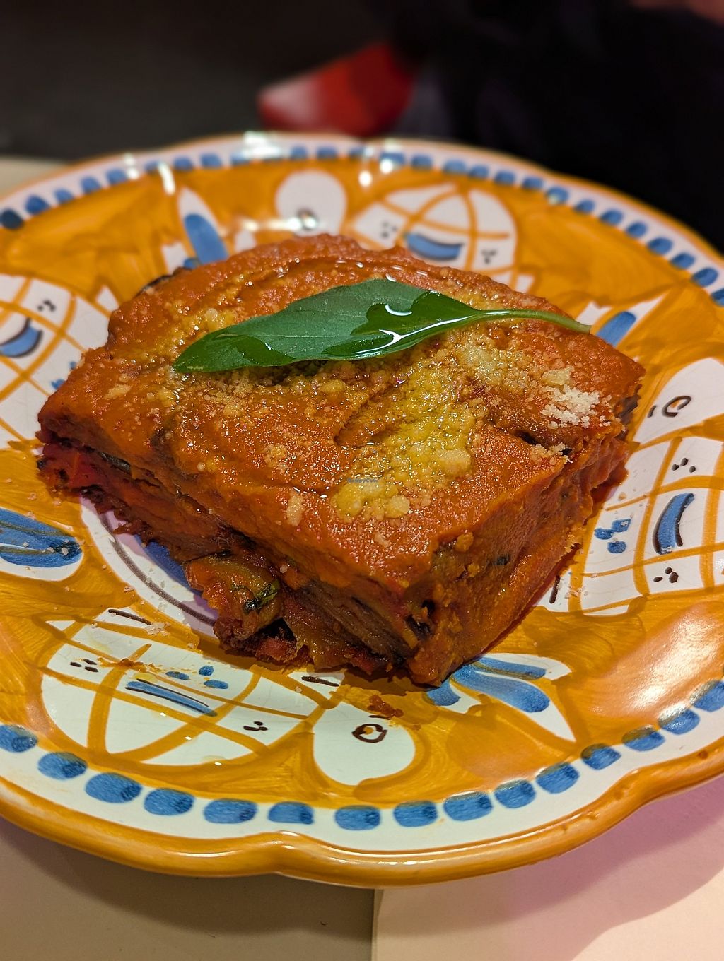 Die Vorspeise „Parmigiana“ schmeckt leider überwiegend nach gesalzenem Tomatenmark. Überhaupt, war die Masse eigentlich Tomatenmark mit etwas Aubergine. Der Preis von 12,90€ ist meiner Meinung nach dafür nicht angemessen. Das neapolitanische Brot dazu haben wir erst gar nicht bekommen, fällt mir gerade beim bewerten auf.