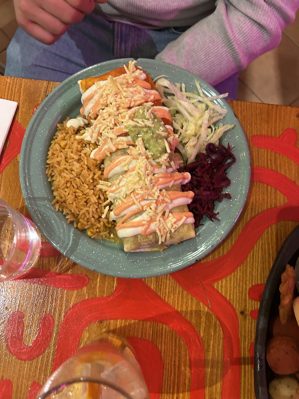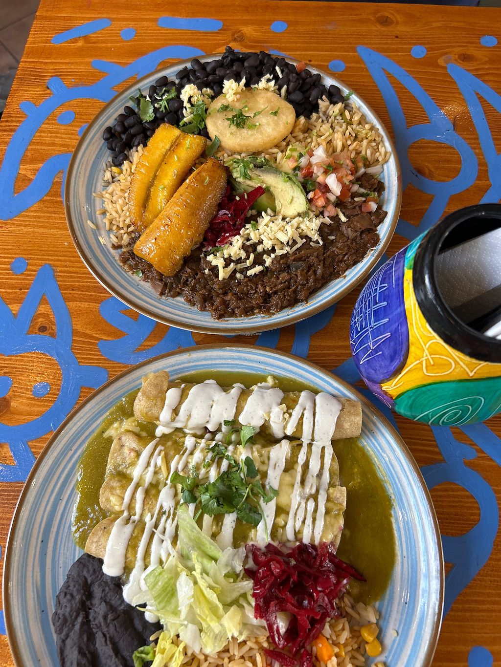 Food was fresh, service friendly but slow. Nice to have Latin food in addition to Mexican. Was not busy at all, took 30 mins to take order, 40 minutes to bring drinks another 10 for food. Ordered enchiladas with vegetables, but tortillas were stuffed with potatoes. Lemonades were underwhelming, not good value for price. High carb food, missing vegetables. Overall seasoning not spicy. Would have been nice to have some fresh tortillas with salsa to make up, add Mexican flavor.