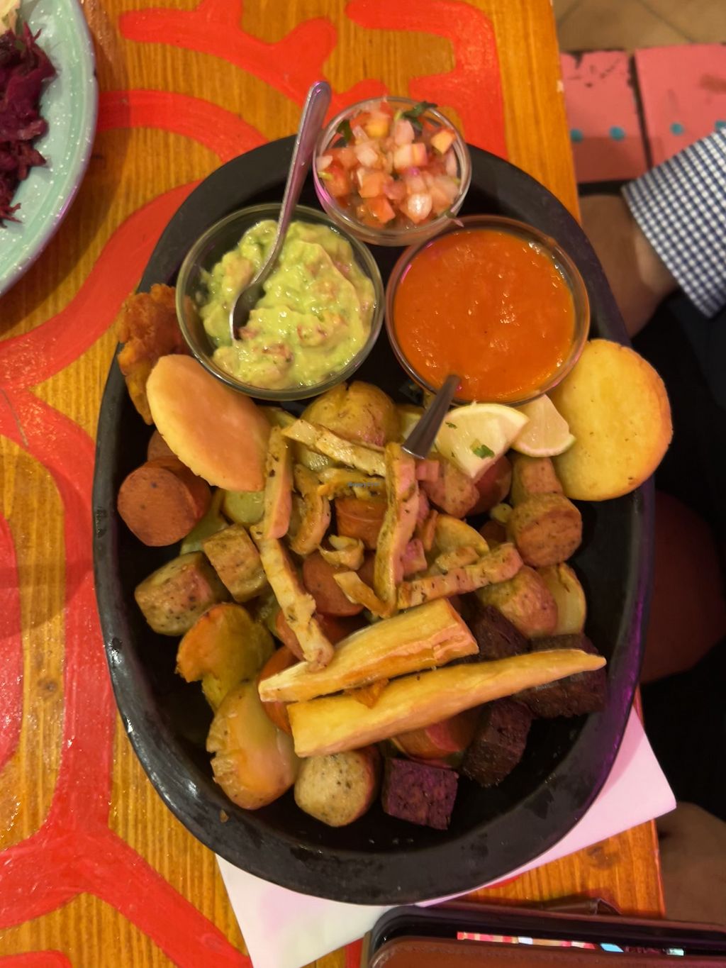 Had the bandeja paisa, was incredible. Was visiting with some non vegan friends and even they were only praising the food. Very friendly staff. No complaints. Clear recommendation.