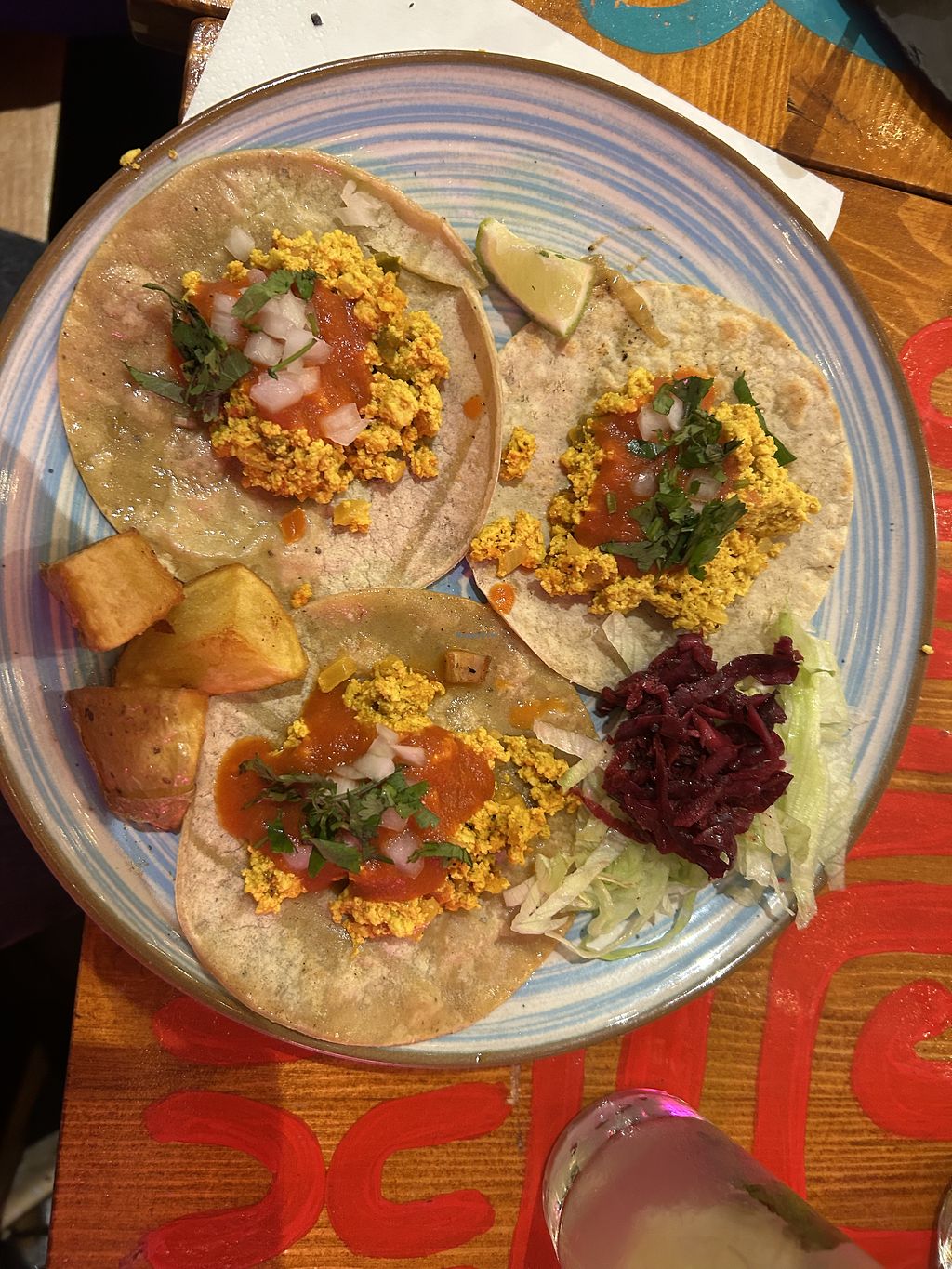 I had a delicious meal here - a colorful plate with various types of vegan meat, vegan omelette, avocado, beans and all that belongs to a latin american dinner. Cozy place too, nice service. Recommended.