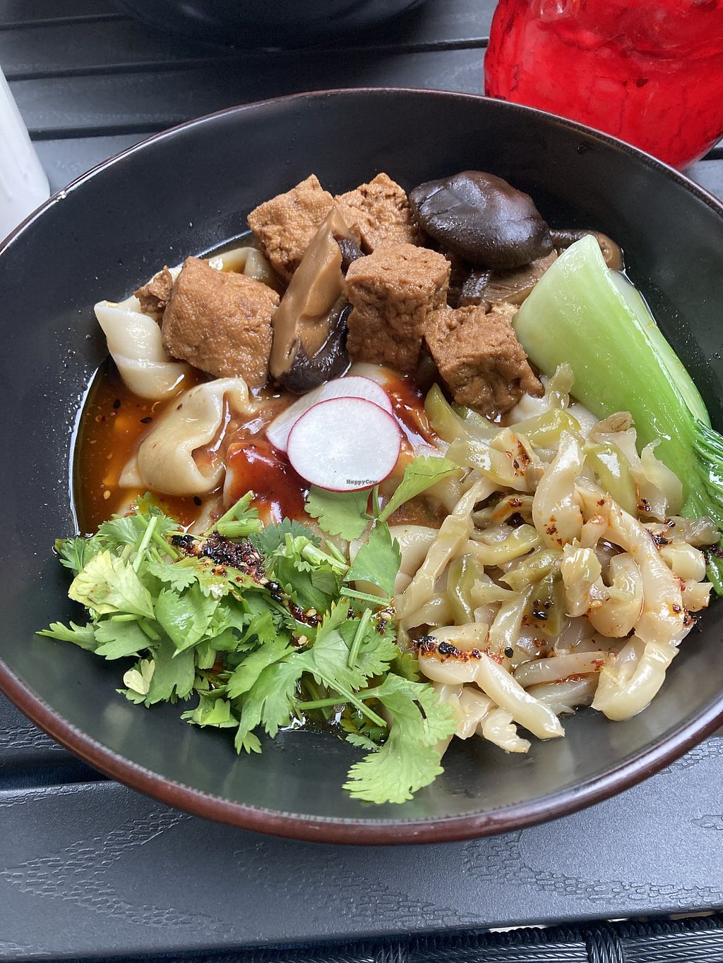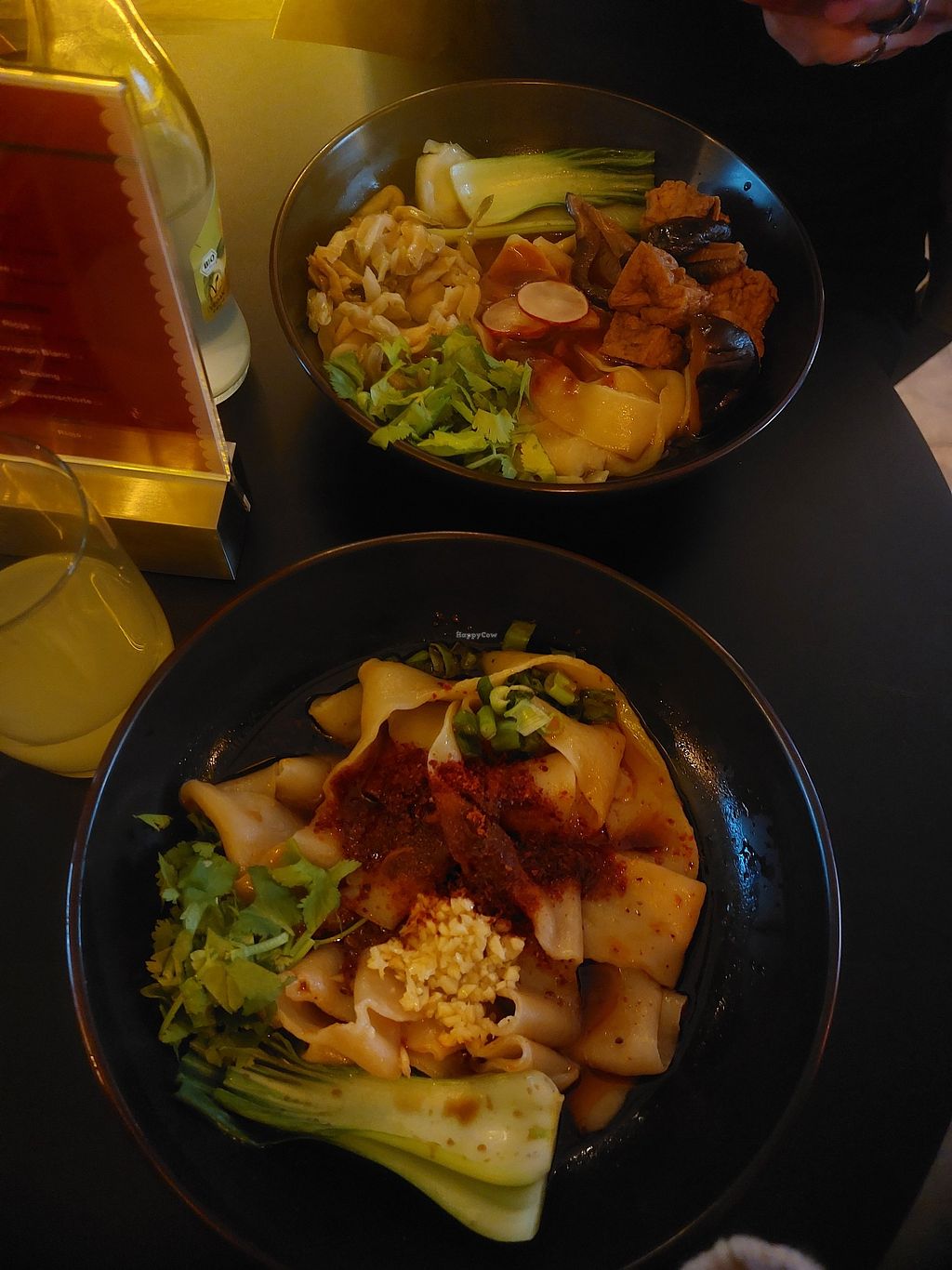 Really delicious handpulled noodle spot with vegan options for most dishes - we got the tingly noodles with noodles at the "Asian spicy" level and it was not that spicy, but had a great flavor! We loved the biang biang noodles with tofu even more - this one had pickled vegetables and a really great savory broth with sour notes. The noodles had a wonderful consistency in both and the tofu was really delicious and soaked up the flavors so well.