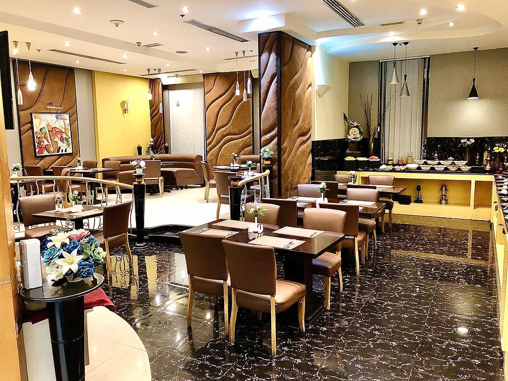Serves meat, vegan options available. Indian restaurant offering an a la carte menu, as well as a buffet with a few vegan items such as baked beans, roasted potatoes, rajma, foul moudamas, vegetable soup, fattoush, muesli and a salad bar. Specify vegan. Open Mon-Sun 6:00am-6:00am.