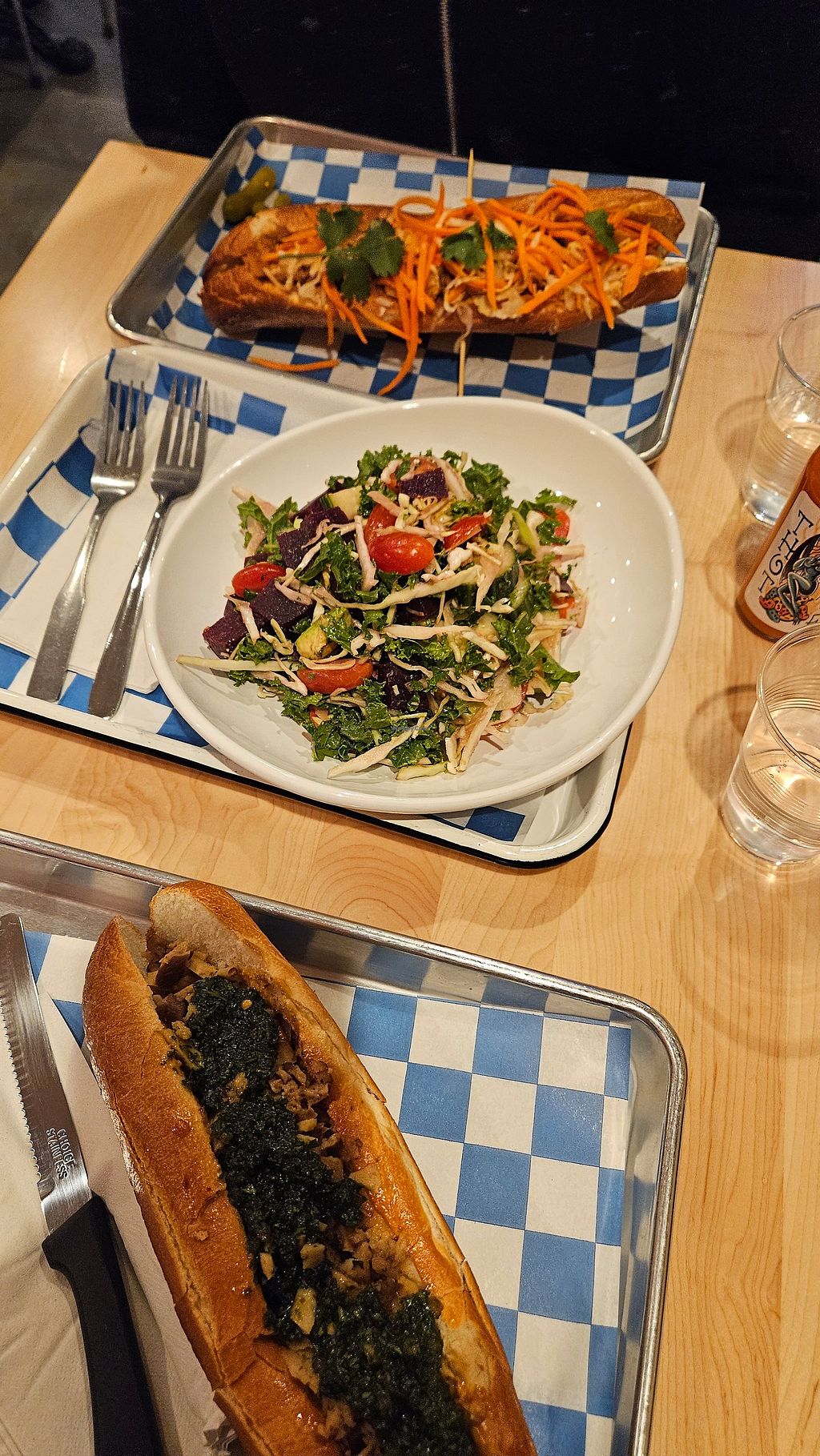 We had a fabulous meal at Animal Boy. Nearly every menu item had a vegan option so we had plenty of choices. We ended up getting The Benny, the Banh Jovi, and the Togarashi beets. I had a great mezcal cocktail as well. The bread is incredible and their vegan protein is unique and super tasty. The ambiance is no-frills but very welcoming and chill. They've done some acoustic treatment to keep the noise levels down as well. We'll be back a lot!
