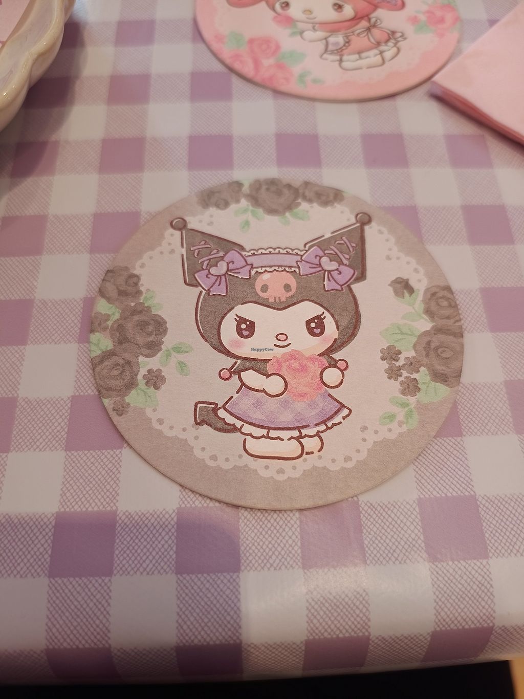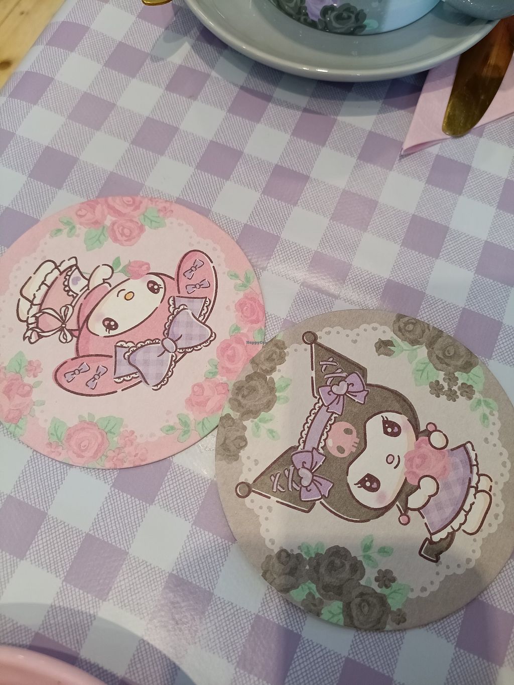 The design of the cafe is really well done, it could have been tacky but it really wasn't. The room upstairs includes a statue of kuromi and one of my melody as well so you can pose with them (if you crouch as they are about 3 foot tall xD). They also play funky music that adds to the atmosphere, and thankfully it's not blaringly loud.
