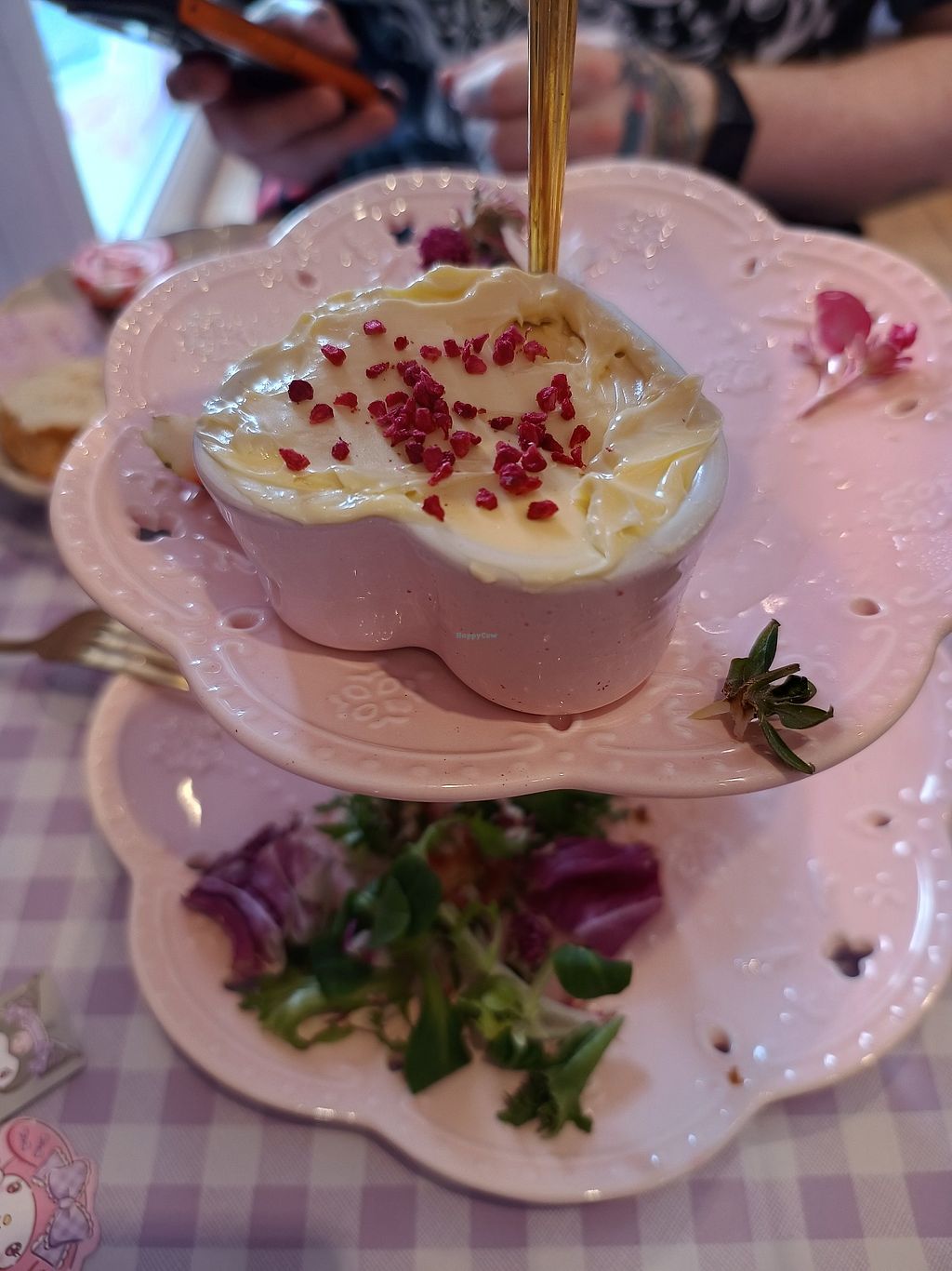 Went with my niece (who loves the place) and my sister and daughter. Such a lovely, pretty place with such lovely touches. Really was a treat. I was so happy I could really join in and have everything I wanted Vegan. Nothing was too much trouble. Highly recommend.
