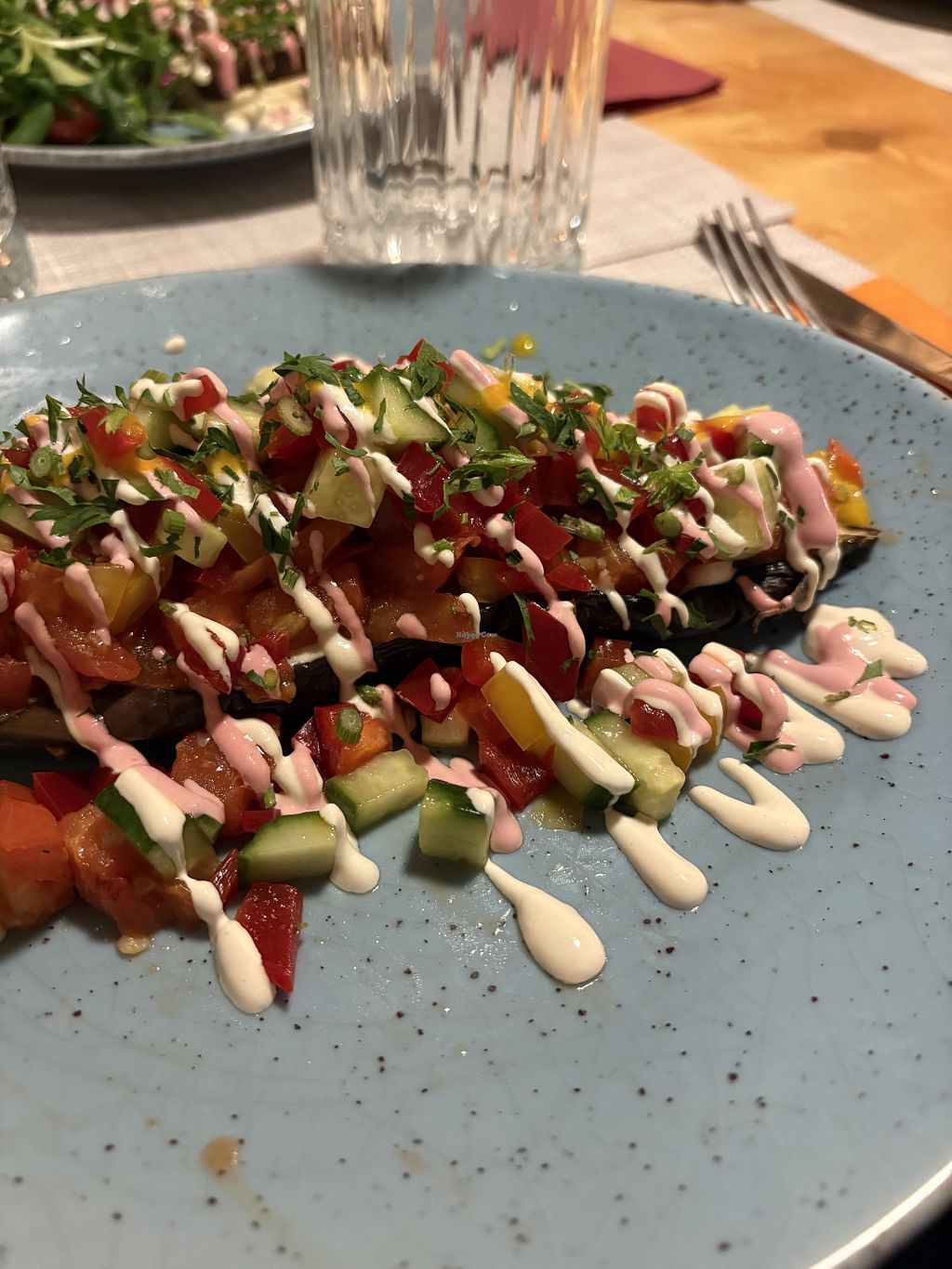 Got hummus and pita for a starter and the loaded aubergine for main. Hummus was so bland, I can’t tell if it even had chickpeas in it. Pita was a little better but didn’t come with the hummus.