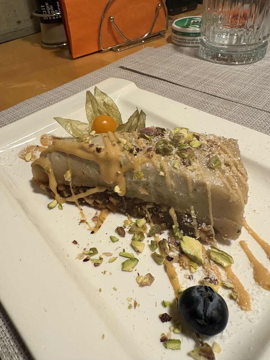 The main dish (Quinoa with mushrooms and tofu) was very delicious! The vegan cheesecake was good, but not worth the price
