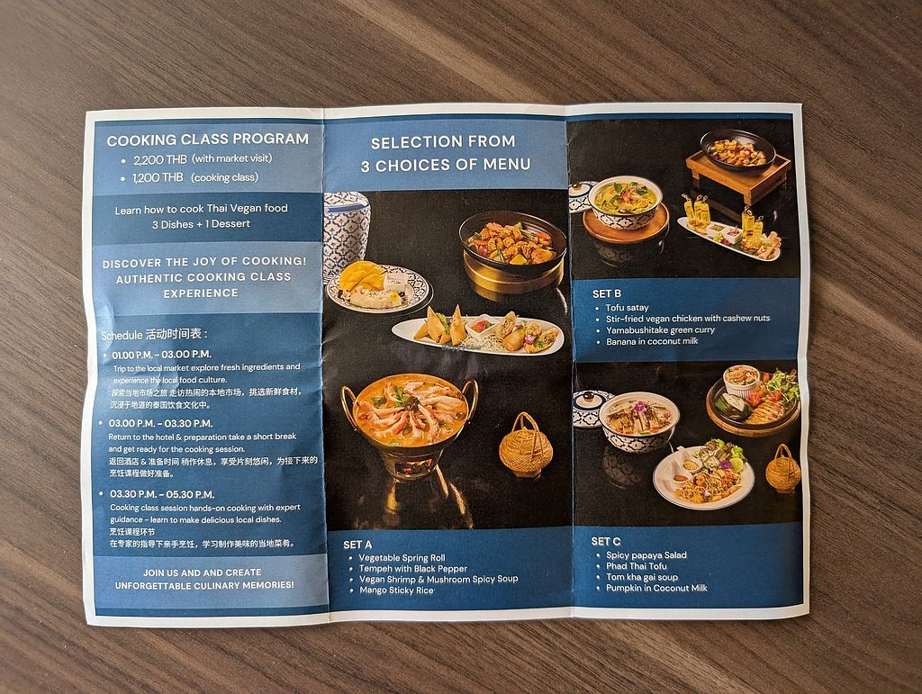 This place has everything you could want as a vegan. The breakfast buffet has different dishes every day, from traditional Thai food to Western options. The restaurant serves a wide variety of dishes for lunch and dinner, and there's a Thai dessert buffet every afternoon. Even the mini bar is stocked with vegan snacks!