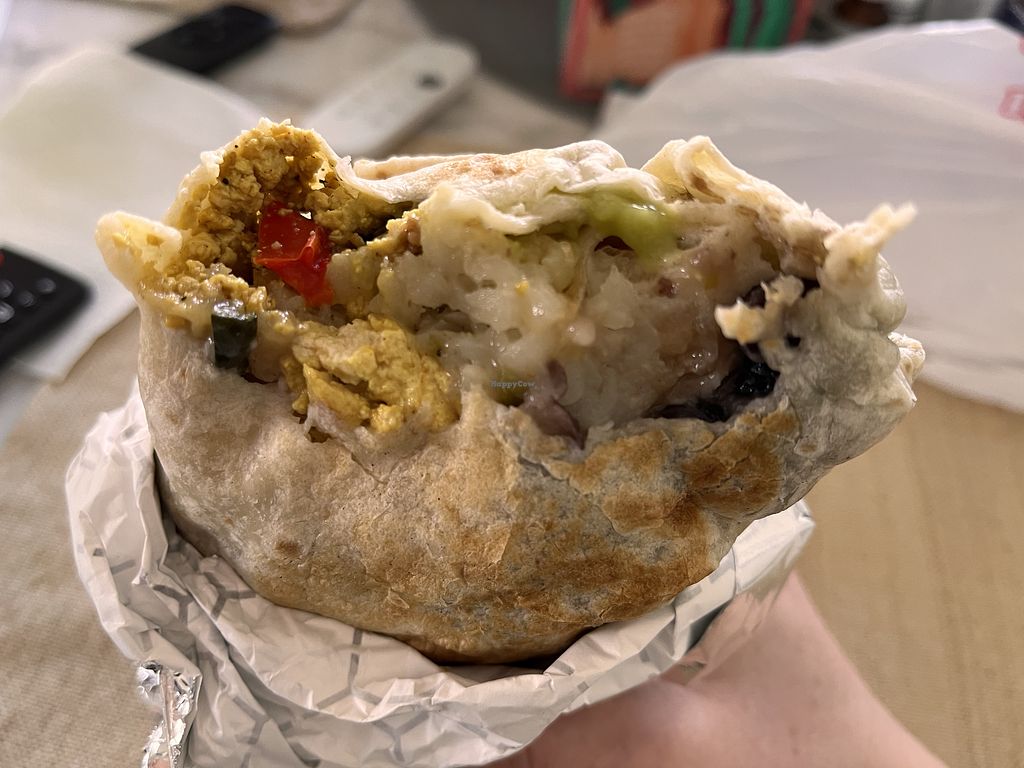 Had a delicious breakfast burrito at La Jolla Farmer's Market. Super nice to have this option as it can be hard to come by. They fly under the vegan radar so that omnivores aren't put off, which I think is a great approach too. Therefore you might not realize at first that it's indeed 100% vegan (you can confirm with the owners, they're very kind). Good stuff!