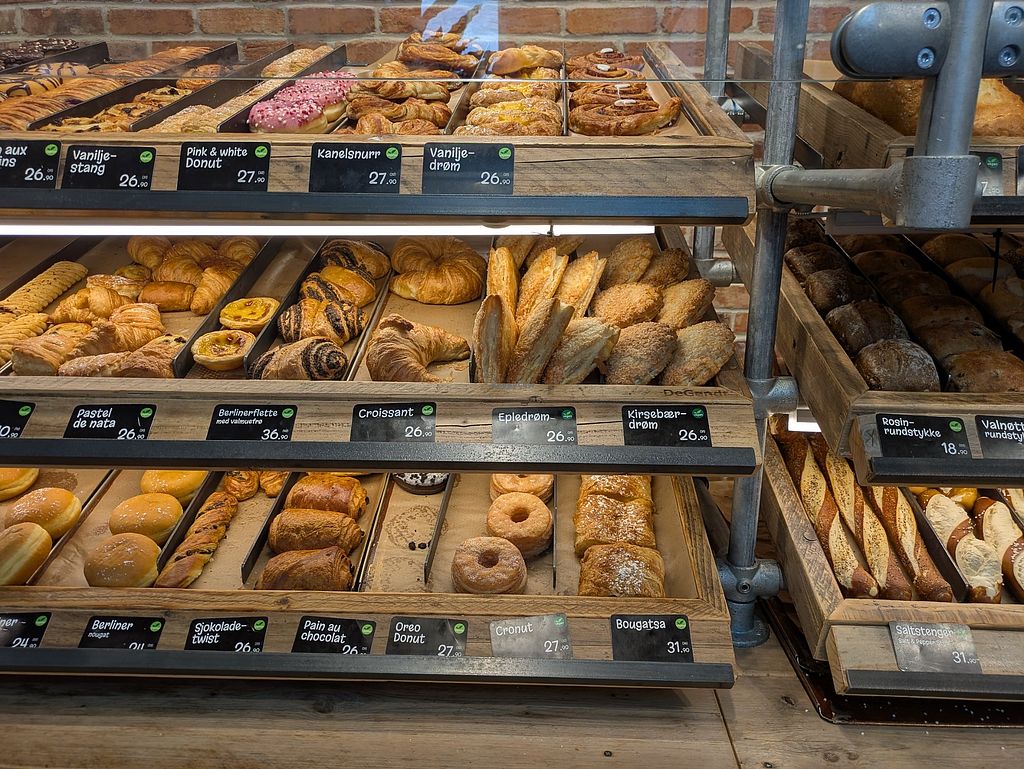 Backstube is a chain of cafes across Norway with clearly marked vegetarian and vegan options. There are soups, breads, salads, pastries, cold drinks and coffees available. We picked up a vegan cronut and vegan chia pudding with mango.