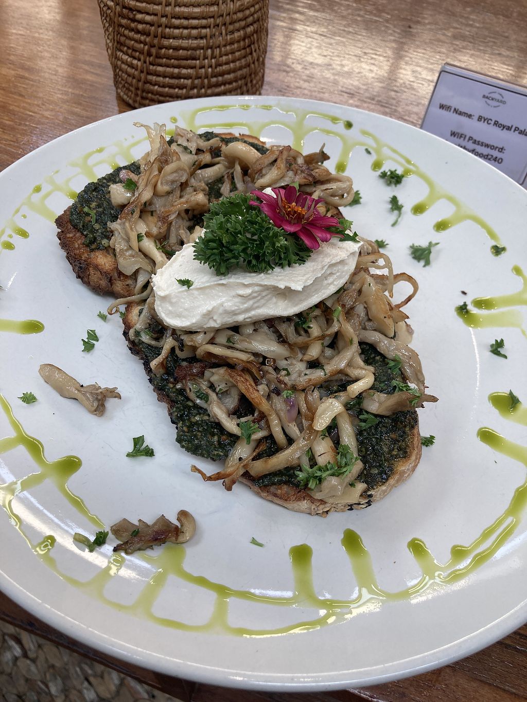 Obviously catering to westerners, but food is good. Mushroom and pesto toast had some of the best vegan pesto I’ve ever had! Avo toast was also good, as were smoothies. Expensive for where we are though.
