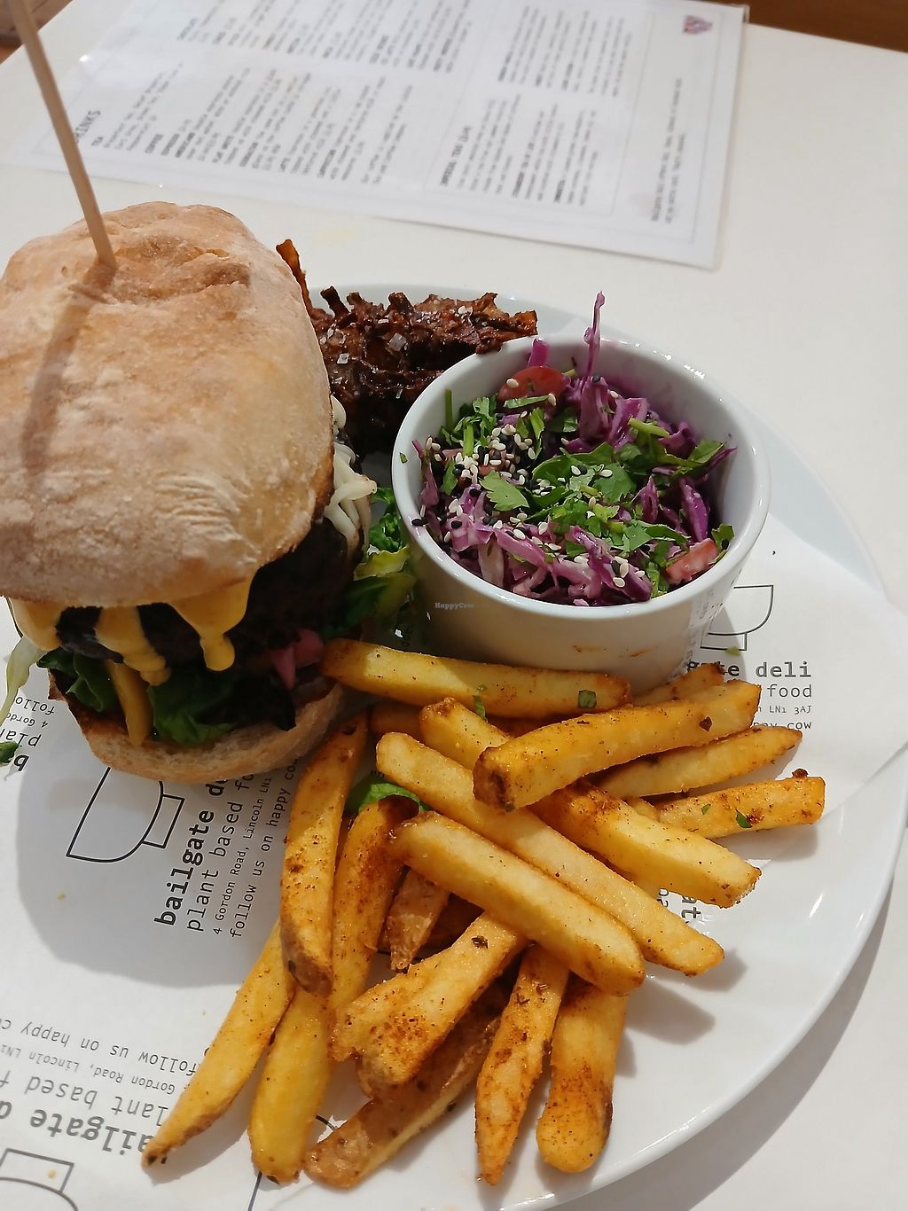 Got a takeaway Burger, came with fries, coleslaw, onion bhaji. Excellent. Very filling.