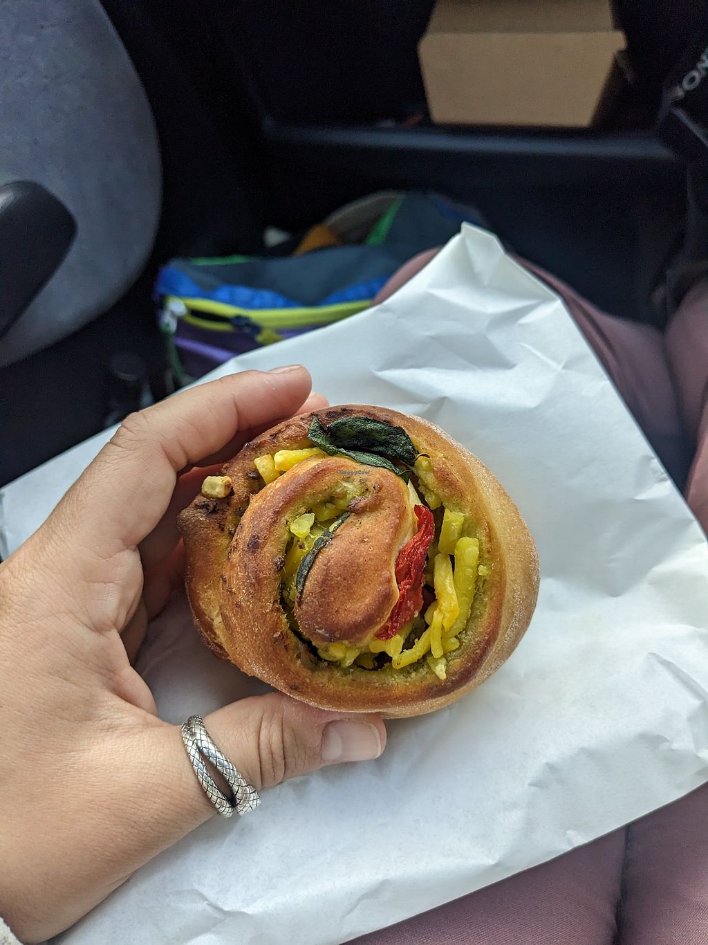 I only noticed this place while passing after being at hustl cafe nextdoor (wish I went here first). The server was very helpful in saying all the labels that are pink are vegan. I got two things to go which were the savoury pesto roll (so delicious, I would eat 10 of those!) and the Mexican bean roll (it was just okay).