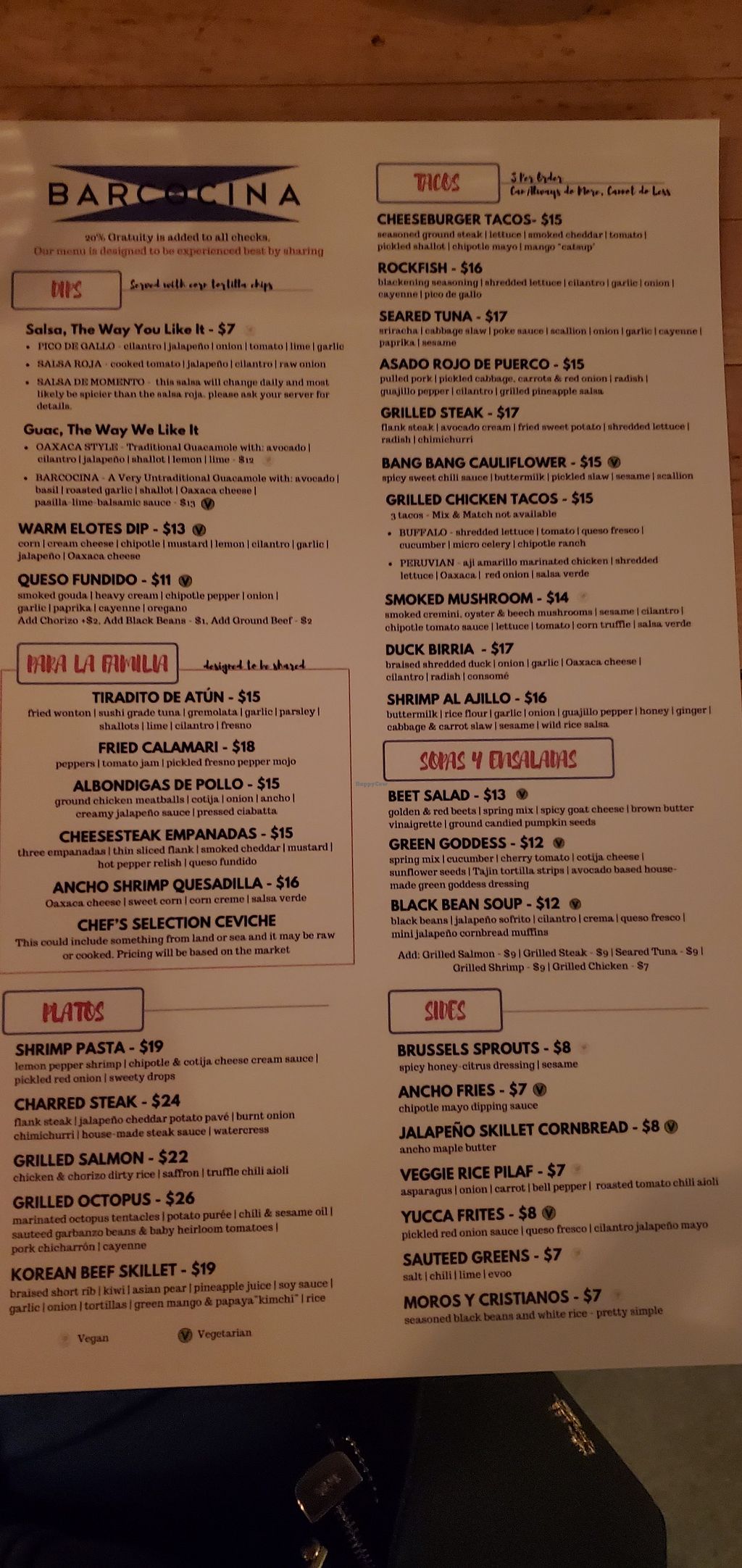 Had the Smoky Mushroom Tacos made with 3 types of mushrooms (cremini, oyster & beech). They were full of flavor with cilantro, chipote tomato sauce, sesame, corn truffle, lettuce, tomato, & salsa. Was full after 2, but ate the last the next day, which was still good even though cold 😋.