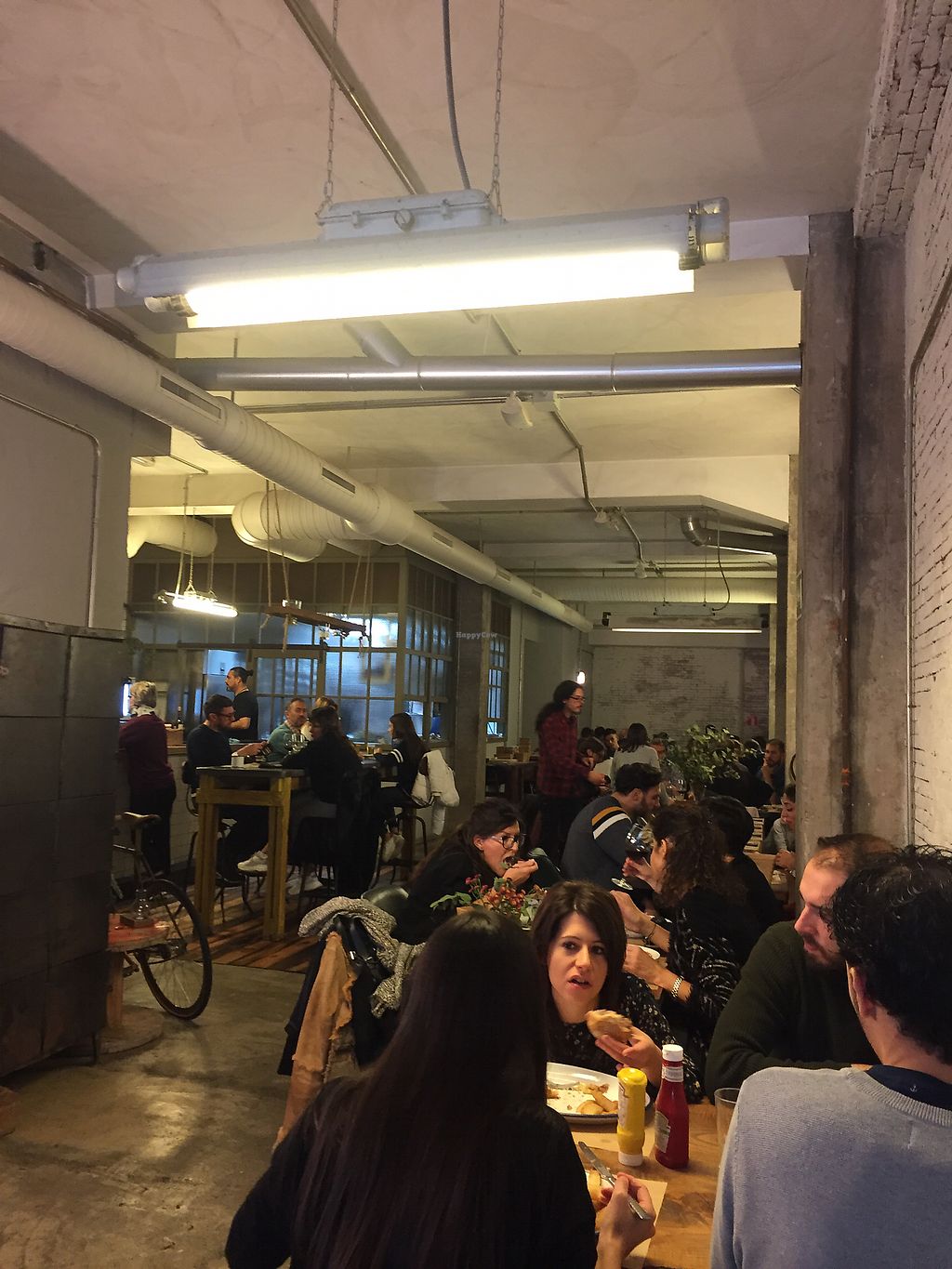 Serves meat, vegan options available. Has labeled vegan menu options including a burger, salad and some Spanish plates. Open Mon-Sun 12:30-17:00, Mon-Sat 19:30-01:30.