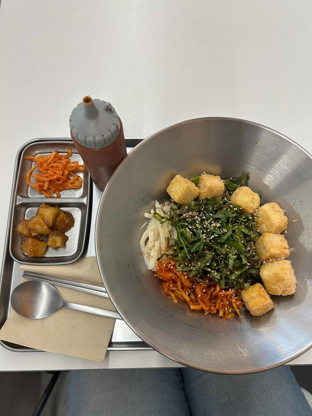 Read moreI tried their vegan bibimbap and as everyone says the tofu is quite nice, also the potato side dish is really good. On a different day, I grabbed the vegan tofu kimbap for a picnic, but it wasn't as good as the bibimbap (a bit too greasy and could have used some spice).