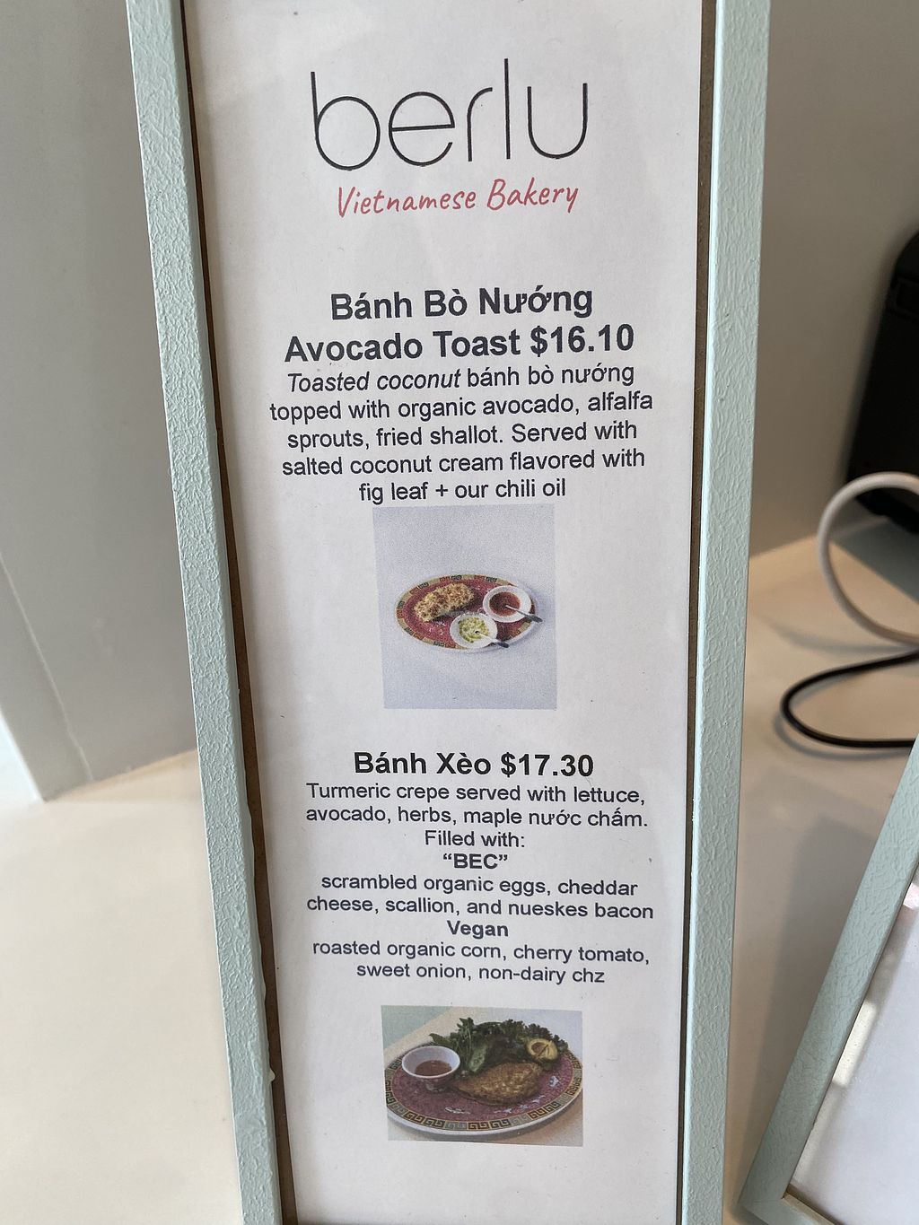 A non vegan recommended this place & Vietnamese food is my favorite. After asking around, I heard other rave reviews from vegans. On the day I went, they had 2 vegan pastries listed and one that wasn’t listed as vegan but they assured me it was- I got this one, a pandan cake slice. It was okay, very lightly flavored and served very cold (not sure if that’s standard). I liked the texture, kind of gelatinous.