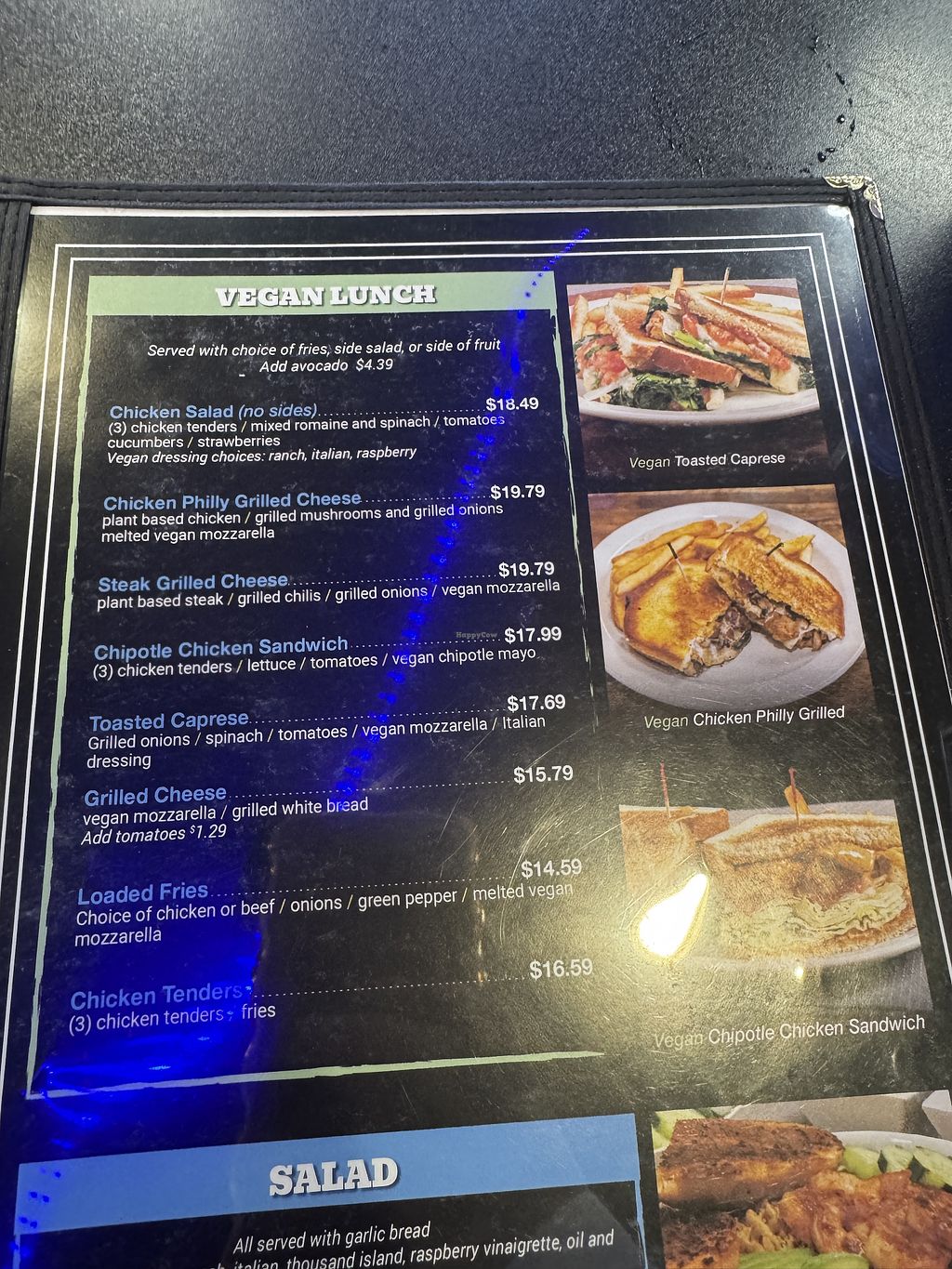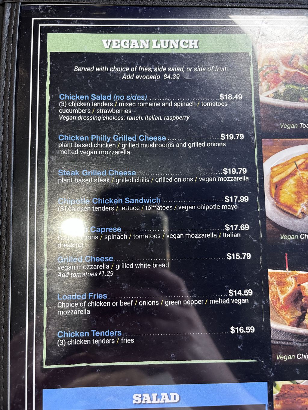 Go visit! Very nice staff- plenty of tables available for a late lunch during week. Over 20 vegan items that are welcomed including chick'n & waffles, burrito bowl, salads, burgers, etc.