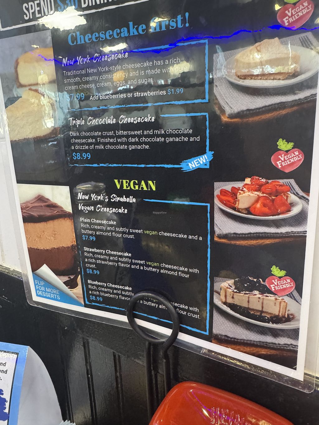 Full page of vegan breakfast options. They also have lunch options and several flavors of cheesecake.