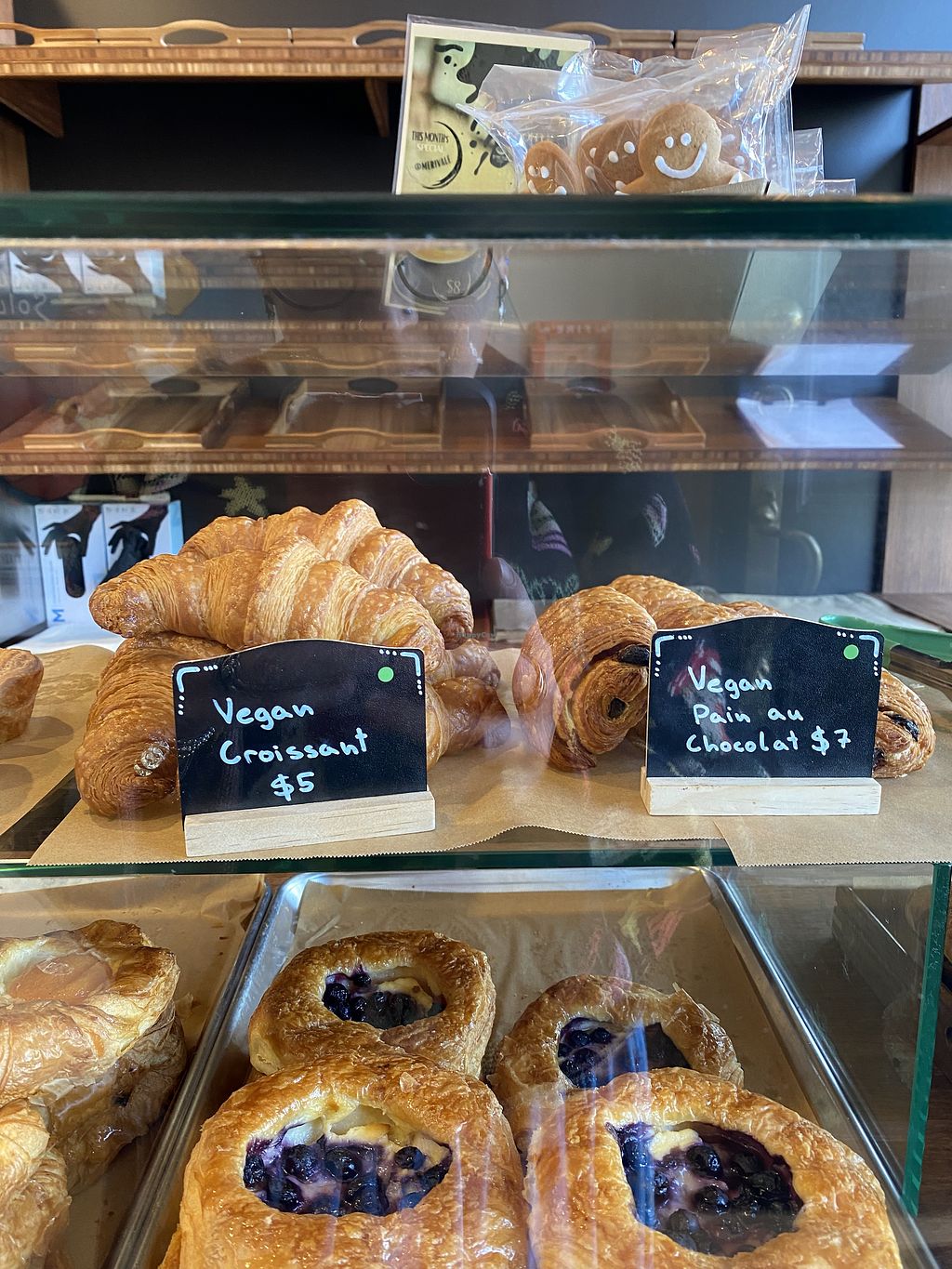 Bakery with vegan-friendly sourdough bread loaves and vegan croissants. Options may vary daily. One of two locations. Open Mon-Sun 8:00am-5:00pm.