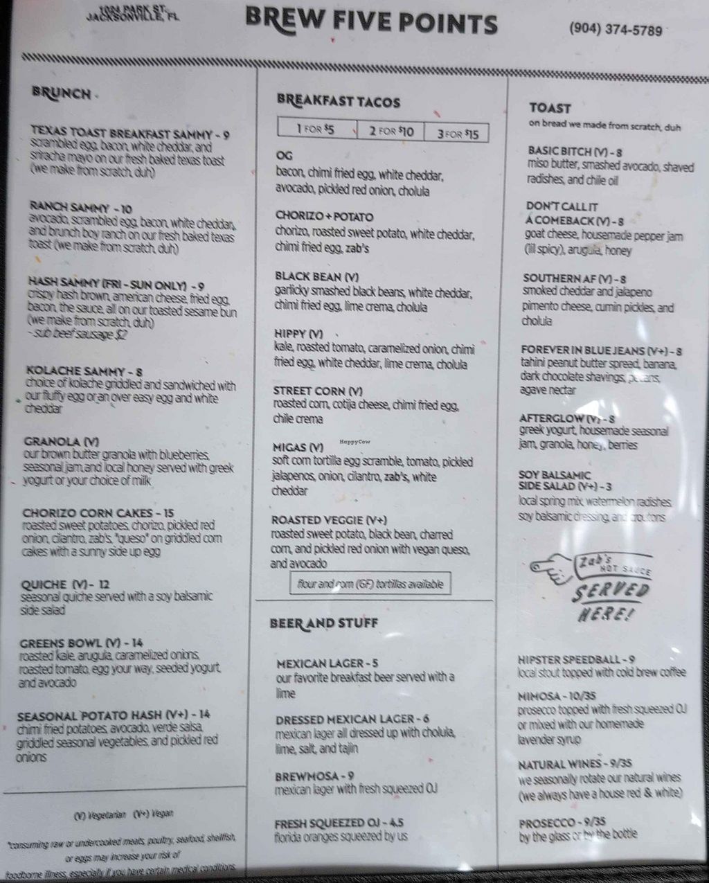 Restaurant offering clearly-marked vegan options such as seasonal potato hash, roasted veggie breakfast tacos, soy balsamic side salad toast, and brown sugar sweet potato muffins on a seasonal menu. Open Mon-Sun 7:30am-4:00pm.