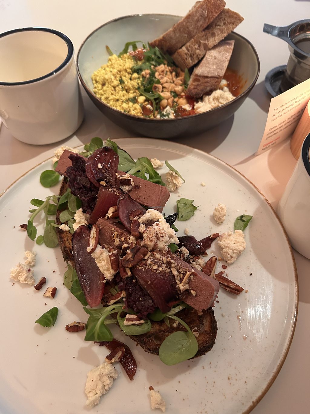 Lovely place to have lunch with a strong plant-based menu. Generous portions and interesting twists on well-known favourite meals. Busy at lunch time so worth making a reservation if you're with a group of people.