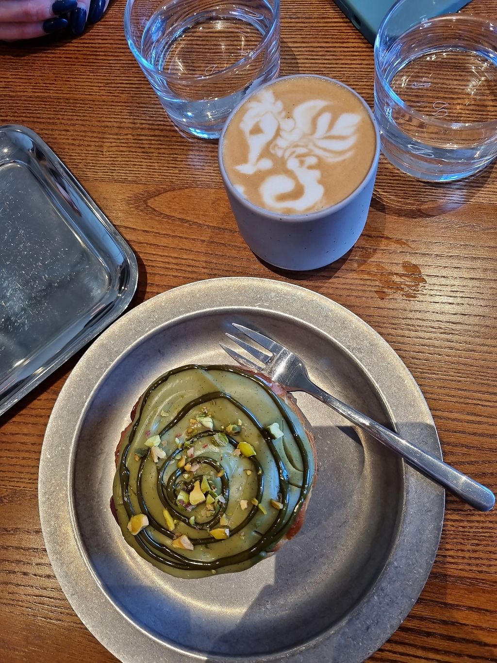 The pastry there is out of this world. We tried the pistacchio brioche and the raspberry knot (for take away) and both tasted just amazing. Perfect layers, silky smooth creme, the raspberry one was my favorite because of the filling with the cream and zingy raspberry jam. Coffee really good also. Space is small but very warm and friendly, with an outdoor sitting area. Very reasonable prices for quality coffee and handmade pastry. highly recommendet!