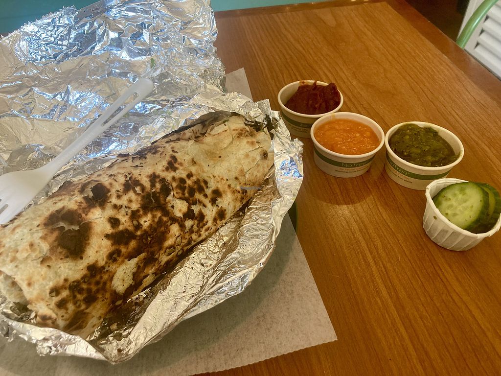 Read morePros: Delicious burrito, Great self-serve sauces, Nice ambience