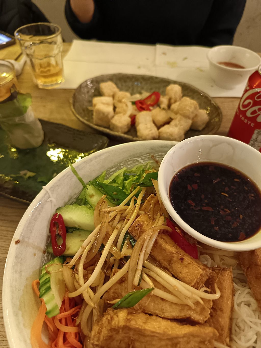 Everything with a V can be made vegan, I had the lemongrass tofu and it was delicious, we also had the salt and chilli tofu which didn't have the most flavour but texture was lovely, summer rolls were delish and wok fried tofu and veg was nice too, people working there are really friendly and helpful!