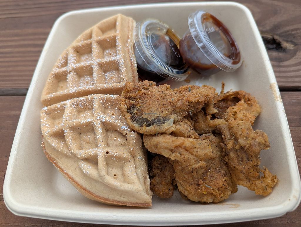 Read moreChegando no restaurante resolvi arriscar um café da manhã não convencional pedindo a leitura vegana de frango frito acompanhada de waffle e... valeu muito à pena!