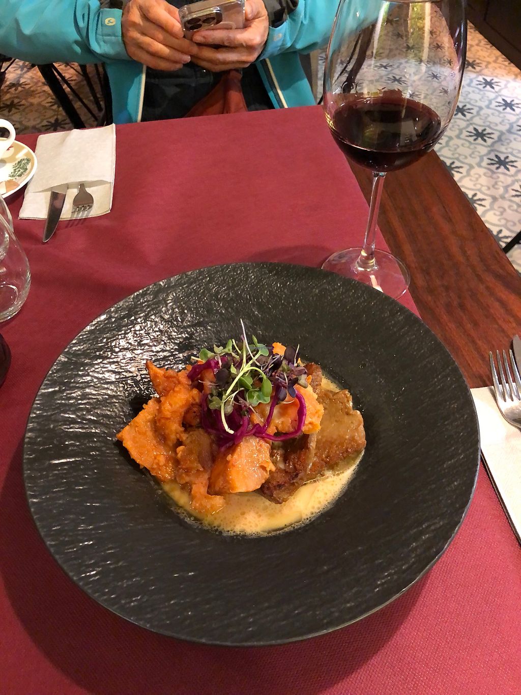 Ravioli crudo de remolacha con queso de hierbas (salteado de nueces y …