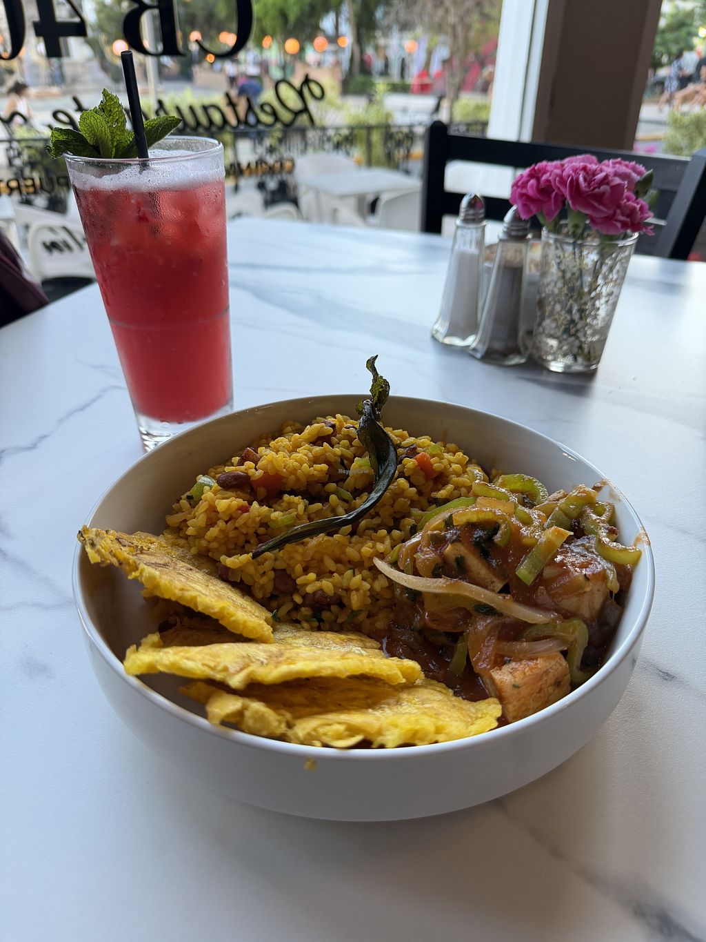 My partner and I shared the strawberry lemonade which was very refreshing after walking around all day. The empanadillas veganas were super delicious and the vegan mofongo was also really good and filling. We really enjoyed our meal and half of the mofongo came back to our BNB. It was still tasty the next day but definitely better hot.