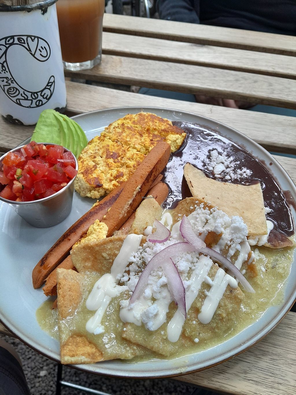 We tried the tofu scramble and the chilaquiles and they were both excellent. The hot chocolate was also delicious.