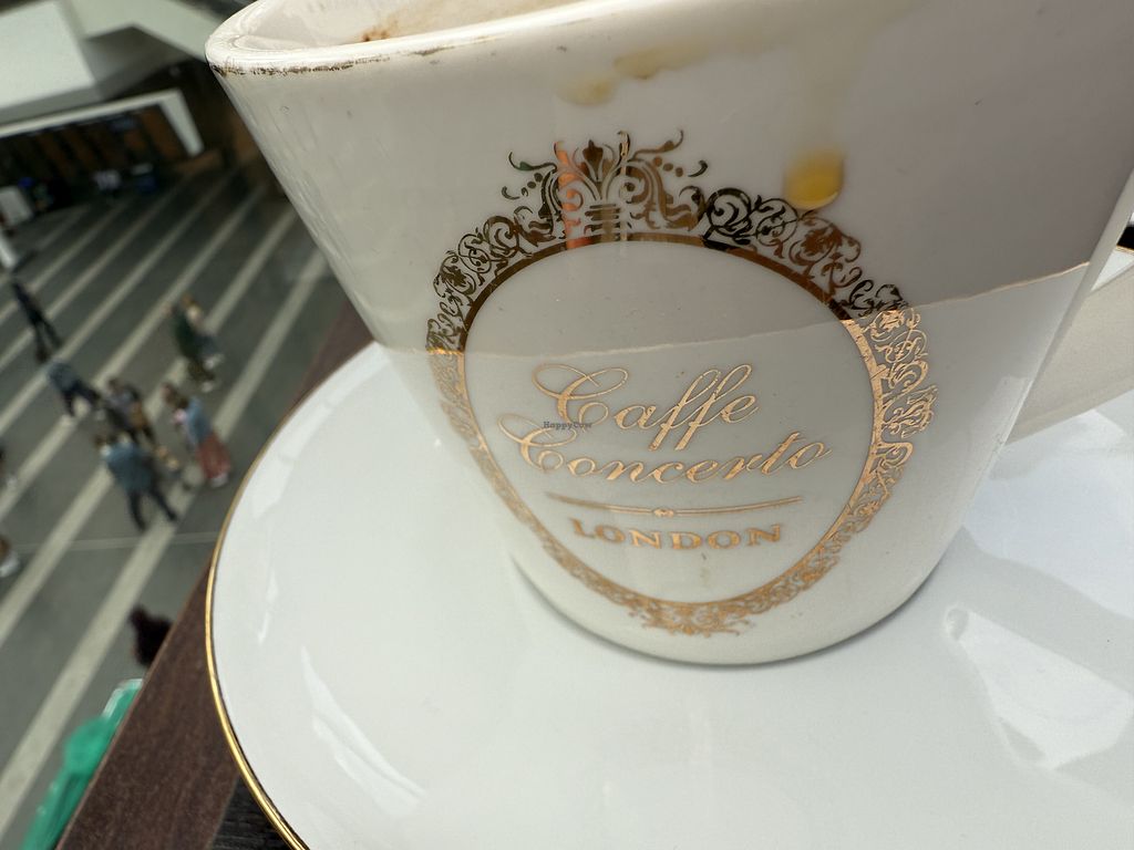 Good coffee. Conveniently located on top level of central train station with a view on 'Ozzy' the steel bull (if you sit close to the balcony). Sometimes, hardly any vegan items are left. Peaceful place, nice decoration. Hot air temperature in summer.