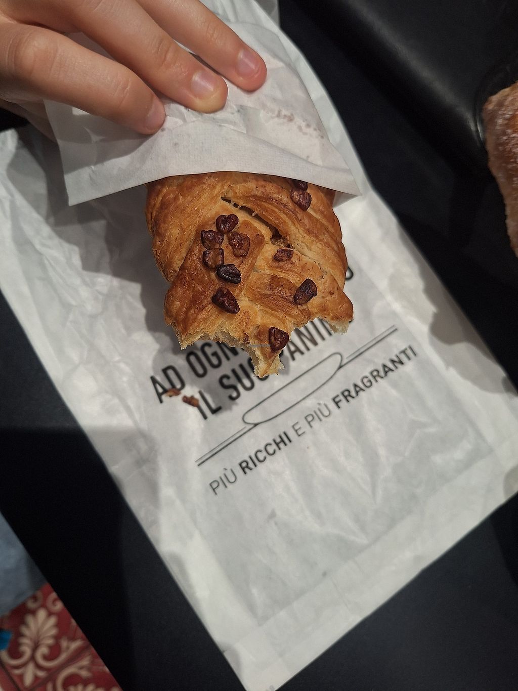 Bar con possibilità di sedersi che si trova all'interno della stazione Porta Nuova di Torino. Aveva 3 opzioni vegane: brioche vuota, brioche con confettura ai frutti di bosco e treccia alle mele e noci pecan.
