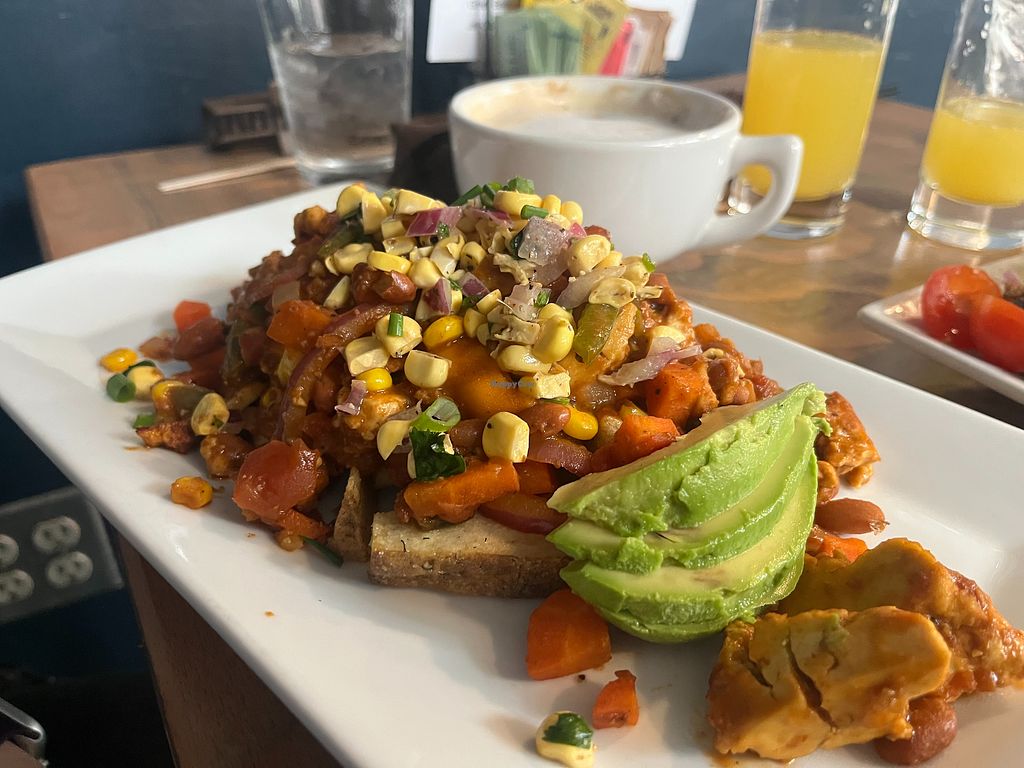 Love this place for a casual Saturday morning brunch. Great breakfast burrito and wonderful menu options for a vegan and Omni group. My only disappointment has been the house-made vegan burger, as the patty was an odd texture, fell apart, and the flavor wasn’t my fav. Other than that, I’ve had a great experience each time I’ve visited for takeaway, dine in, or patio seating. Go here over the restaurant accorsa the street any day of the week!