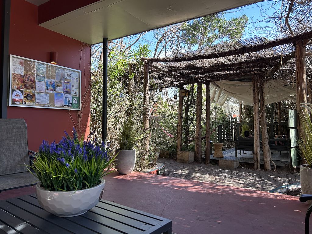 A non-profit experiential educational community center and restaurant. Provides breakfast, lunch, and dinner using seasonal ingredients and serves complimentary organic kukicha tea. Communal table seating. Located near hike and bike trails on the Colorado River and includes an oasis of gardens, a Montessori school, rental rooms, and onsite massage therapist. Open Mon-Sun 7:00am-8:30pm. Open 365 days a year.