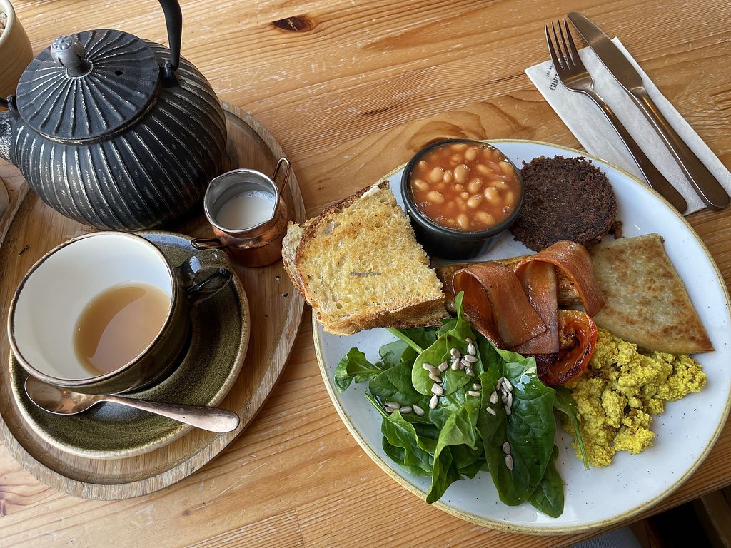 Went two days in a row on our trip at Edinburgh. Really cute all vegan coffee shop. They had a little book shelf so you can read while you eat. We got the full vegan breakfast 10/10 loved everything about it. I also got a blueberry loaf. Delicious. So good I recommend. Second day got a toastie, best chocolafe jaffa cake and passionfruit smoothie . 😋