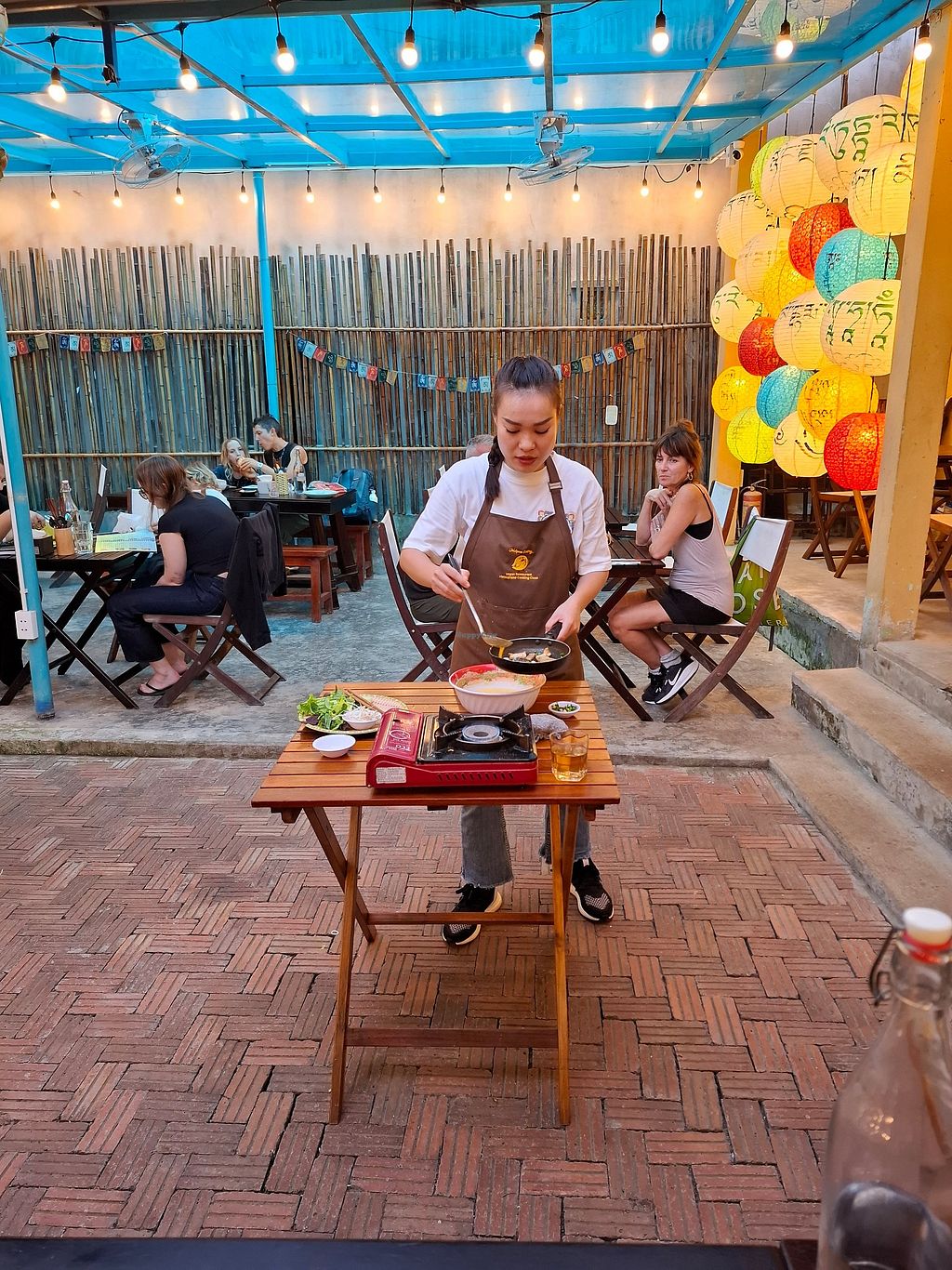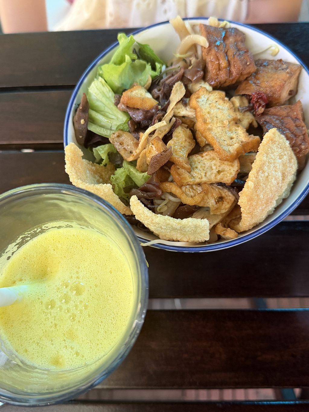 Nicely decorated restaurant with pleasant outside seating. Cao lau was delicious and they had a unique fried wonton soup where the fried wontons came separately to dunk in the broth. We also tried the vegan cheese platter, which was a nice surprise to try vegan cheese with local flavors.