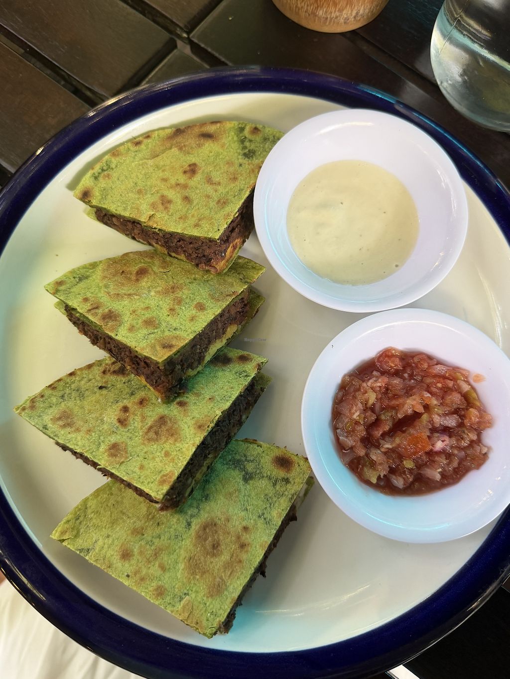 Pros: Ambience , staff, burger, scrambled tofu sandwich, quesadillas
