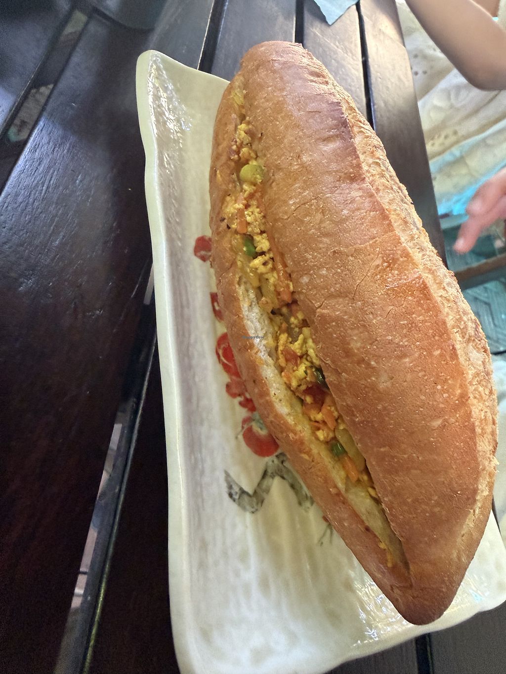 We had the chickpea sandwich and the vegan beef sandwich. The chickpea sandwich is with falafel, not the best falafel I had in Vietnam but also not the worst 😂. The vegan beef sandwich was really good, it has pieces (I think black beans) that are similar to falafel, not much taste, but the pesto sauce they have in the sandwich is really good!