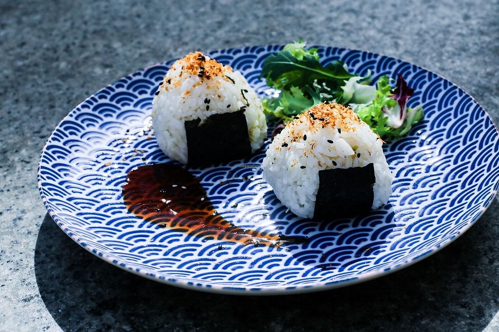 Onigiri, rellena de aguacate, nabo y veganesa.