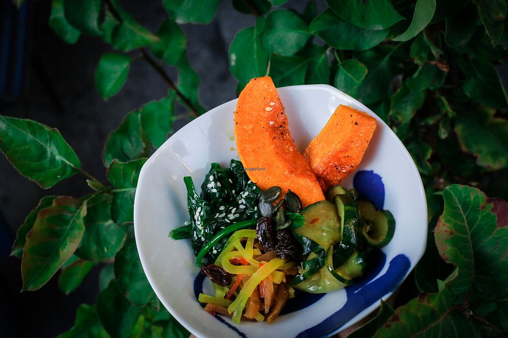 Otumami: calabaza + espinaca con sésamo + nabos + pepino agridulce
