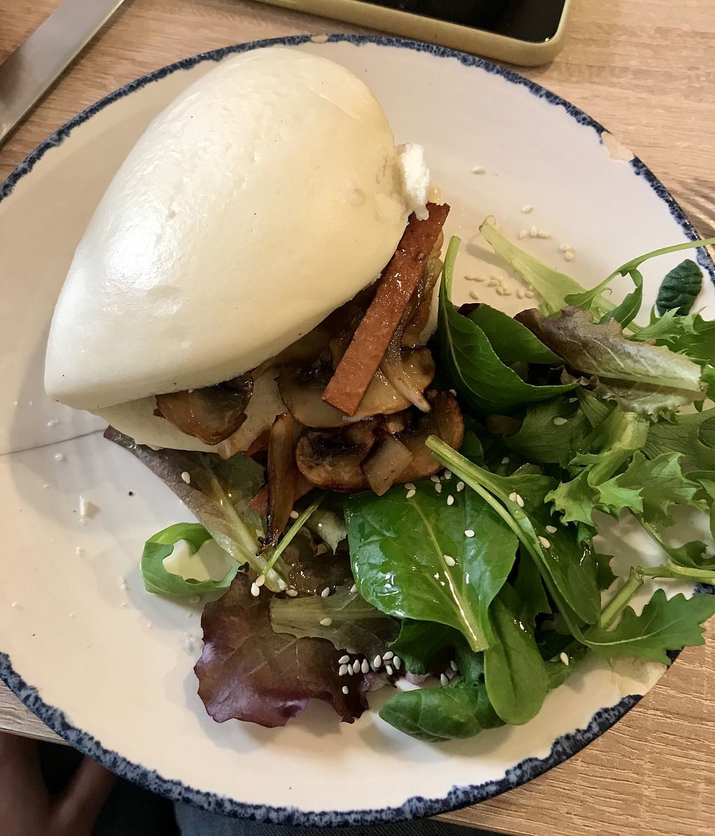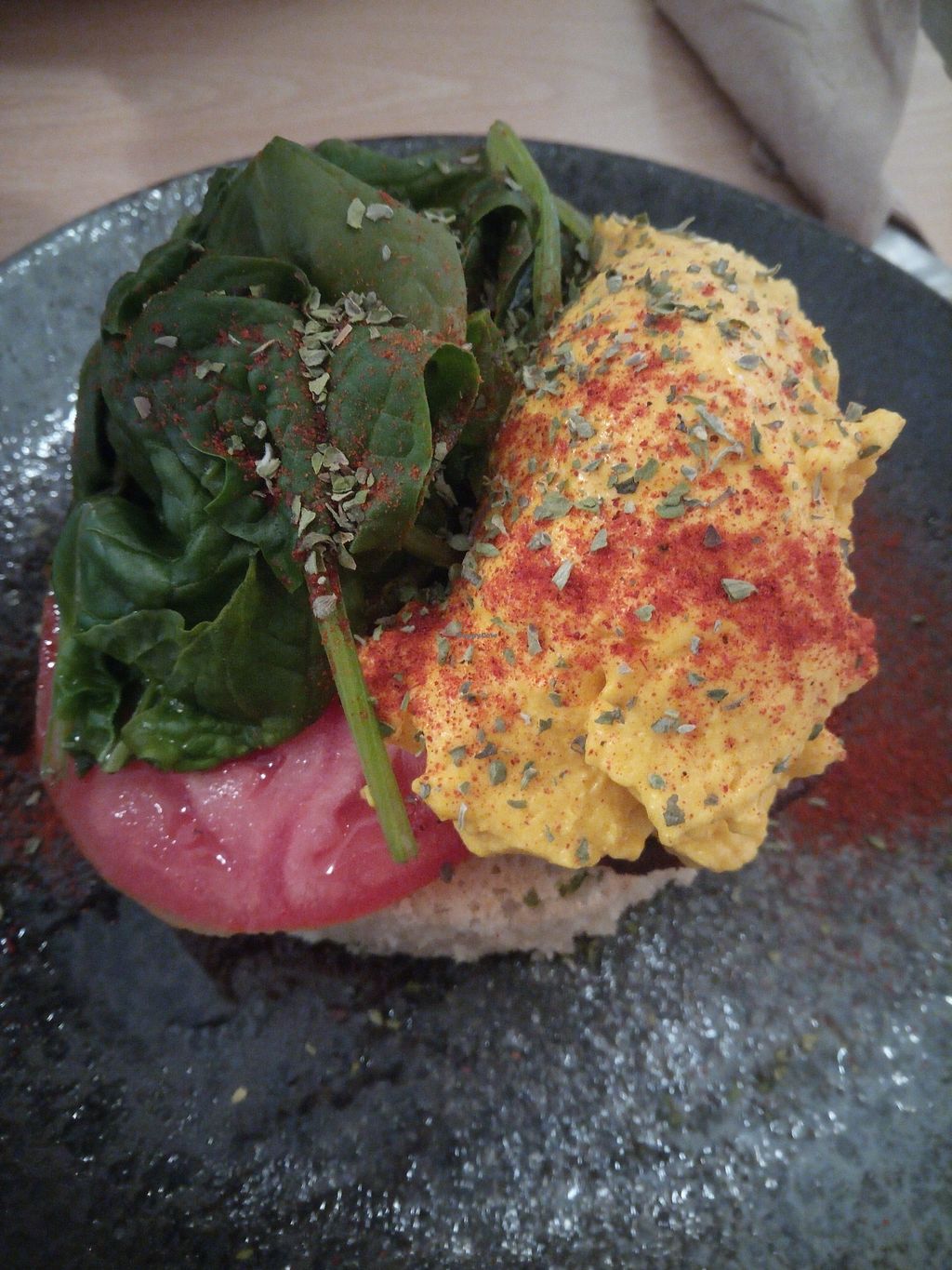 Pancakes with fruit and vegan cream, an americano, Oreo cake and a cap…